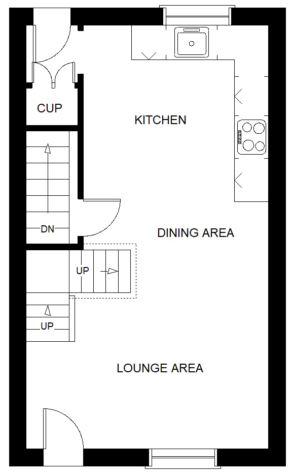 - 25ft long open plan living/dining/kitchen