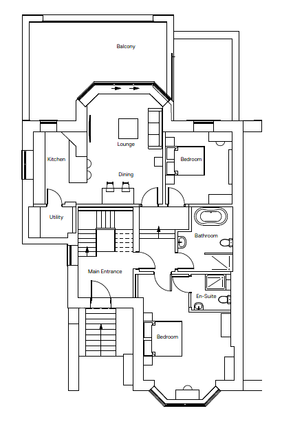 Apartment 2 has the considerable benefit of its own large sea facing balcony which is directly accessible from the main living room, creating a seamless connection between indoor and outdoor living. There is plenty of space for outdoor furniture and sun loungers, perfect to sit and soak up those stunning sea views! The heart of the home is the superb 19ft x12ft living/dining room with is exposed brick feature wall and which opens in to a high-quality kitchen. The wall of glass at the far end of the room immediately draws your eye to the stunning views and there are fully retractable glazed bi-folding doors that open directly on to the balcony. The kitchen area is beautifully appointed and well-equipped with a range of built-in appliances which includes an oven, hob and extractor canopy, a fridge, freezer and dishwasher. The kitchen opens into a separate and handy utility room. This contemporary space is perfect for modern day family living or entertaining.
