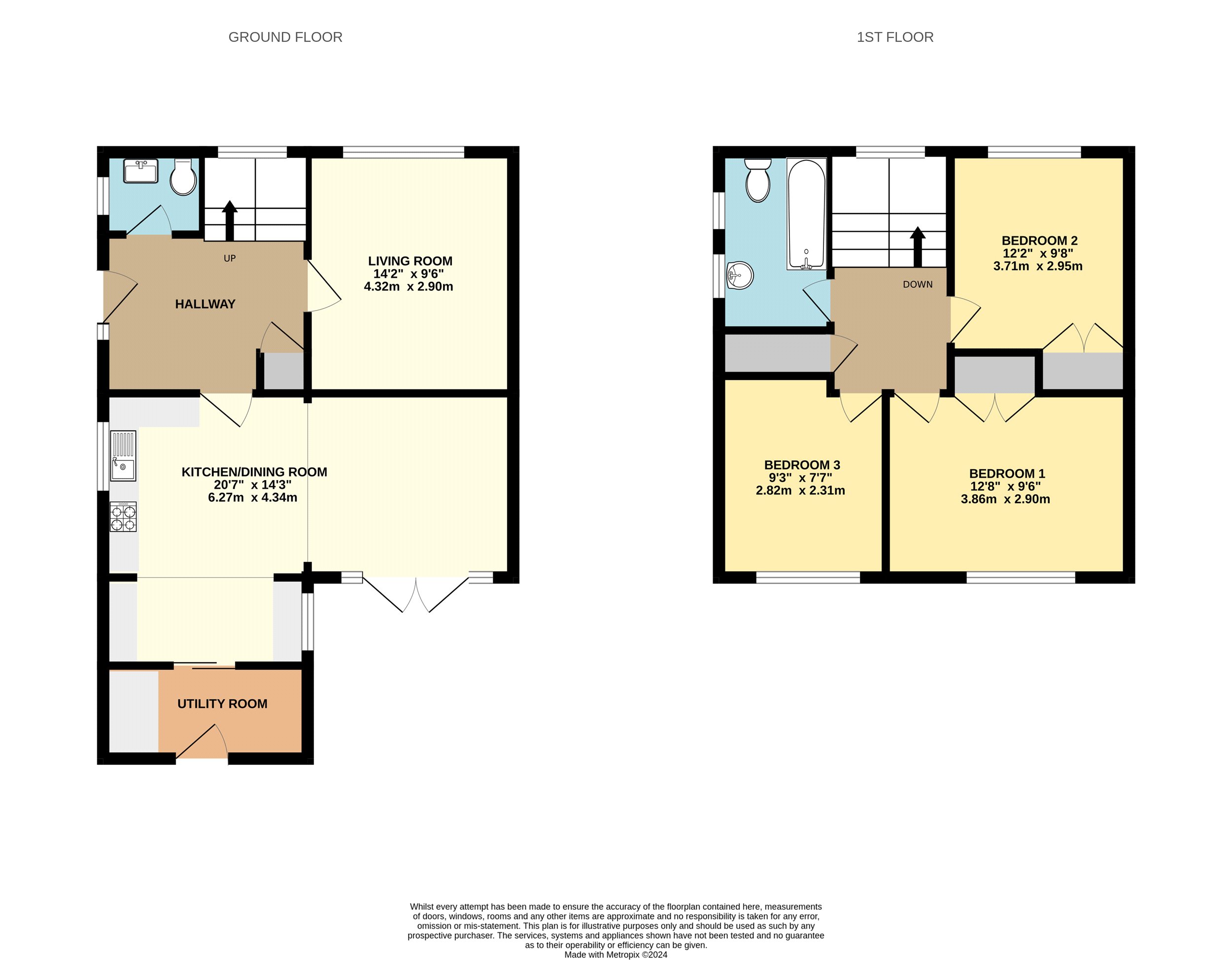 Upstairs, there are three well-sized bedrooms. Bedrooms 1 and 2 come with built-in wardrobes, while bedroom 3 can serve as a small double room, a single room, or a home office.