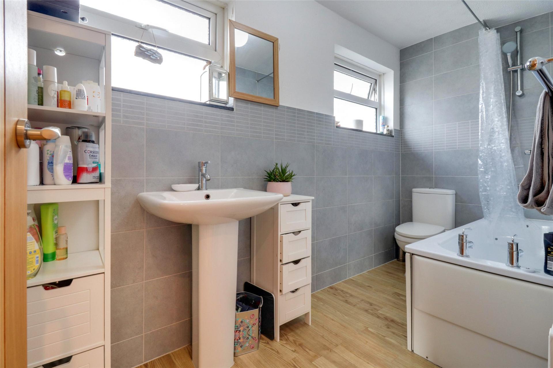 The family bathroom is complete with a bath and shower, WC, and washbasin.