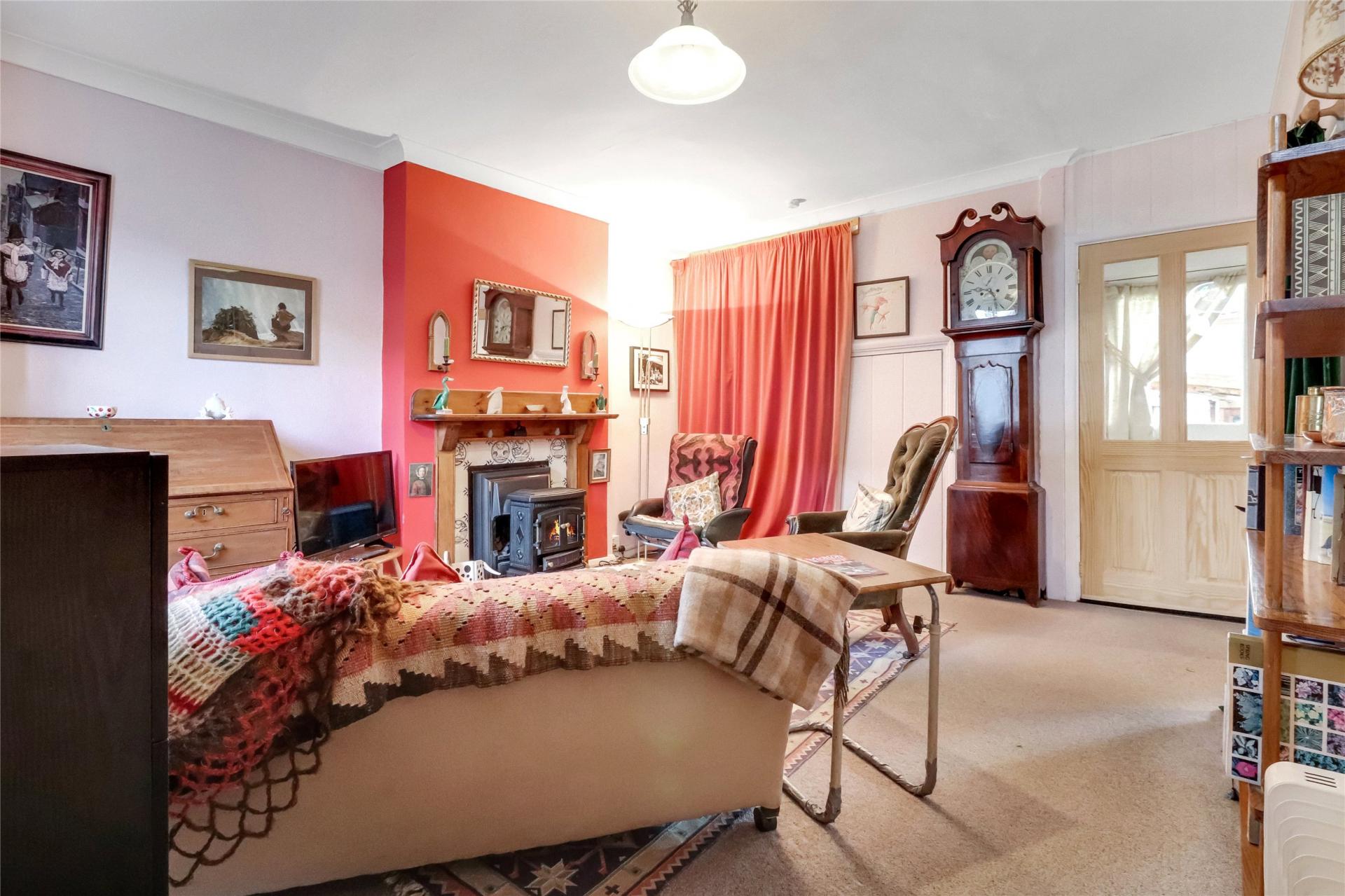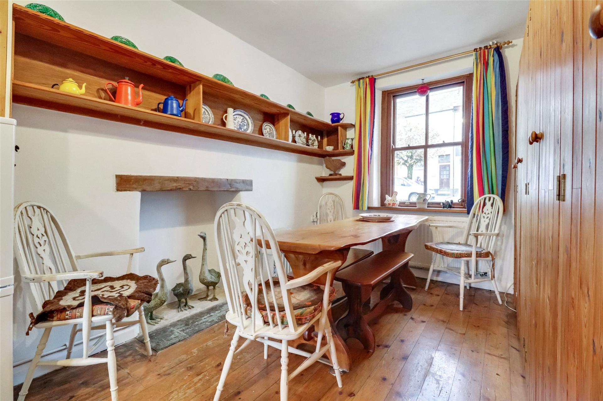 Located just a short stroll from the centre of South Molton, this charming property opens directly off East Street into a welcoming lounge. From here, stairs rise to the first floor, with doors leading to the rear porch and through to the kitchen/diner. The kitchen/diner features useful floor-to-ceiling larder-style cupboards, space for a dining table, and windows to both the front and rear.