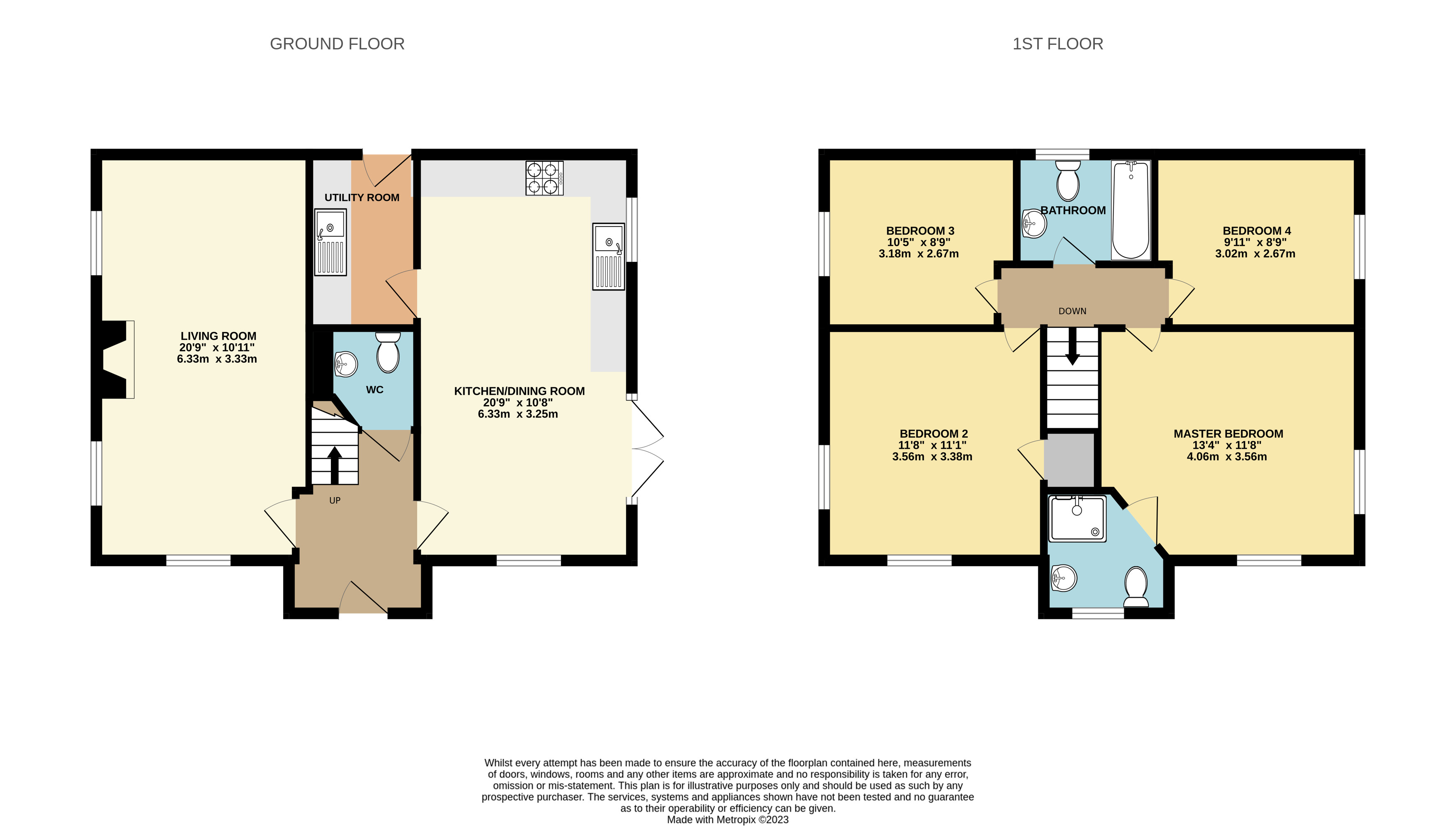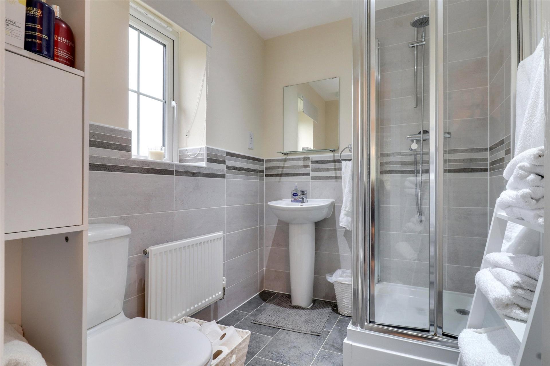 Upstairs, there are four well-proportioned double bedrooms. The master bedroom is particularly spacious and features a modern ensuite shower room, complete with sleek tiling, a shower, WC, and wash hand basin. The family bathroom is also contemporary in design, including a bath with an overhead shower, WC, and wash hand basin.