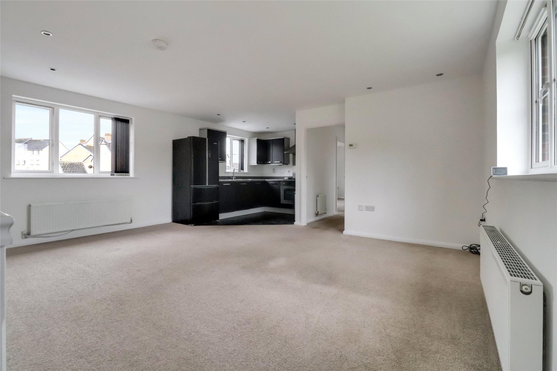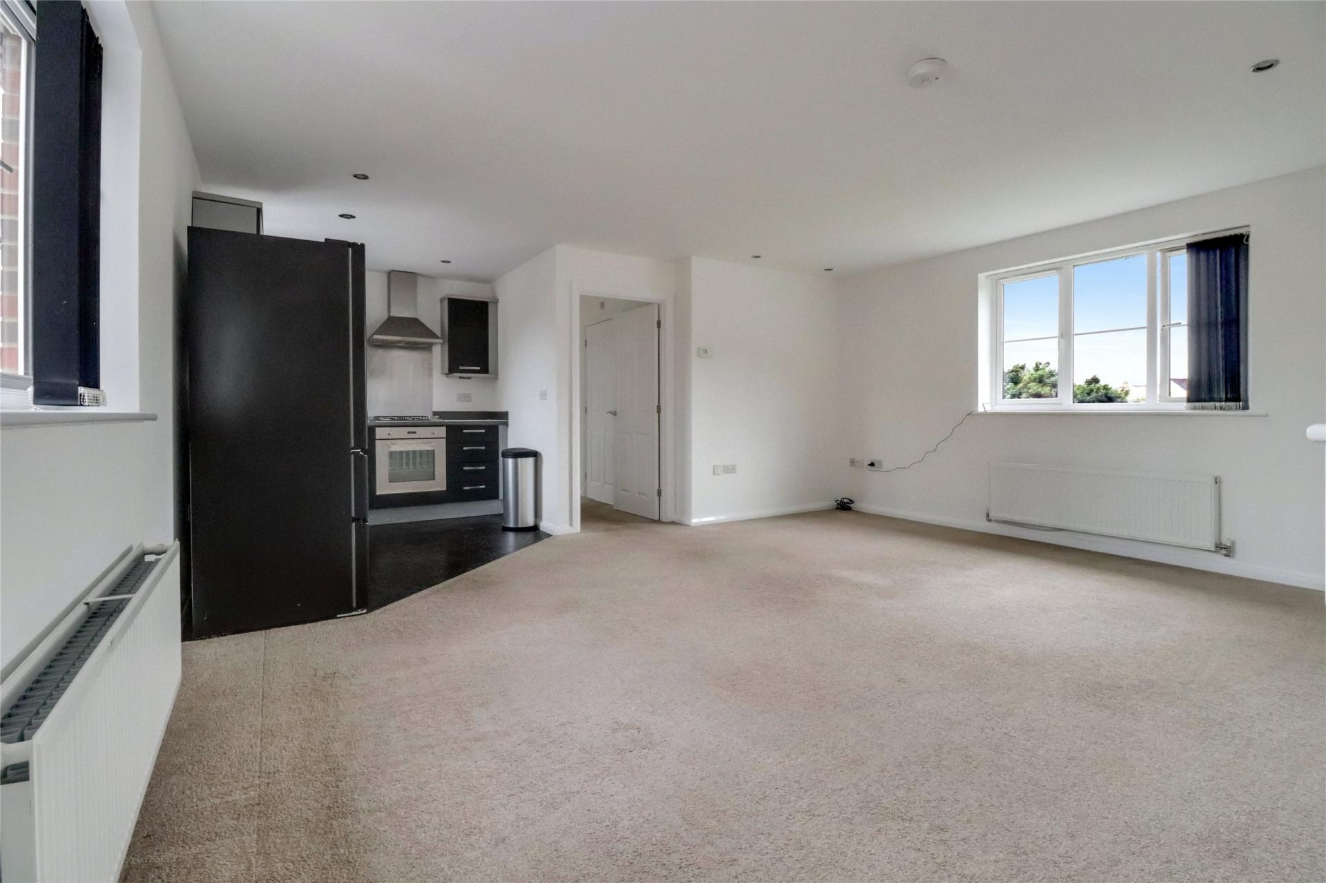 Upon entering through the ground floor porch, a staircase leads you to the first floor. Here, youll find an expansive, open-plan kitchen/living/dining area, offering plenty of room for substantial furniture and presented in good overall condition. The kitchen, located at one end of the room, is fitted with matching wall and base units and provides space and plumbing for both a washing machine and dishwasher, along with space for a freestanding cooker.