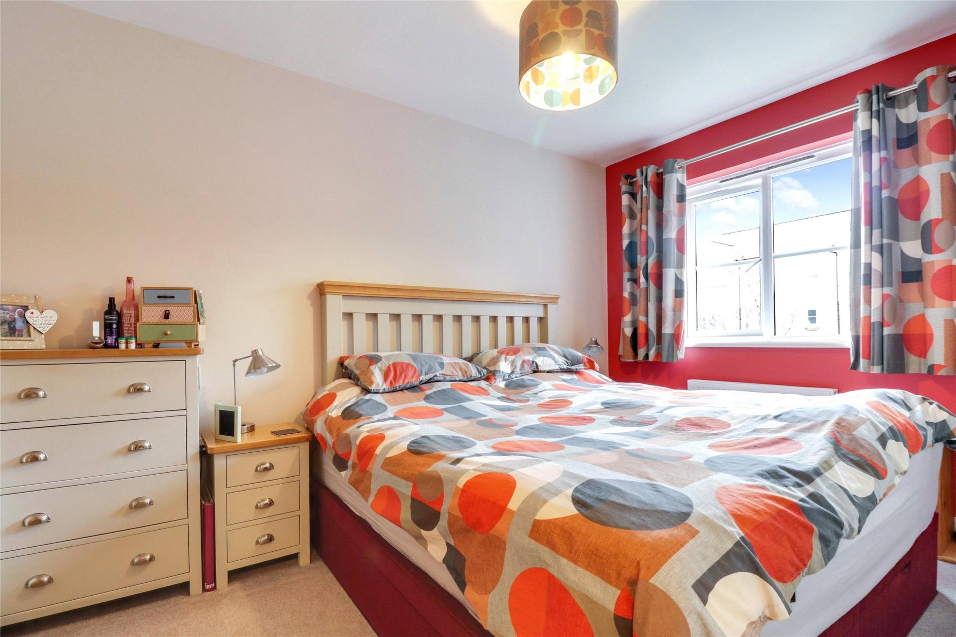 An appealing half staircase rises from the hall to the first double bedroom and the family bathroom. The well-appointed first double bedroom boasts an attractive vaulted ceiling, which provides the feeling of space. The modern family bathroom features a three-piece suite with a shower over the bath and coordinating wall tiling.