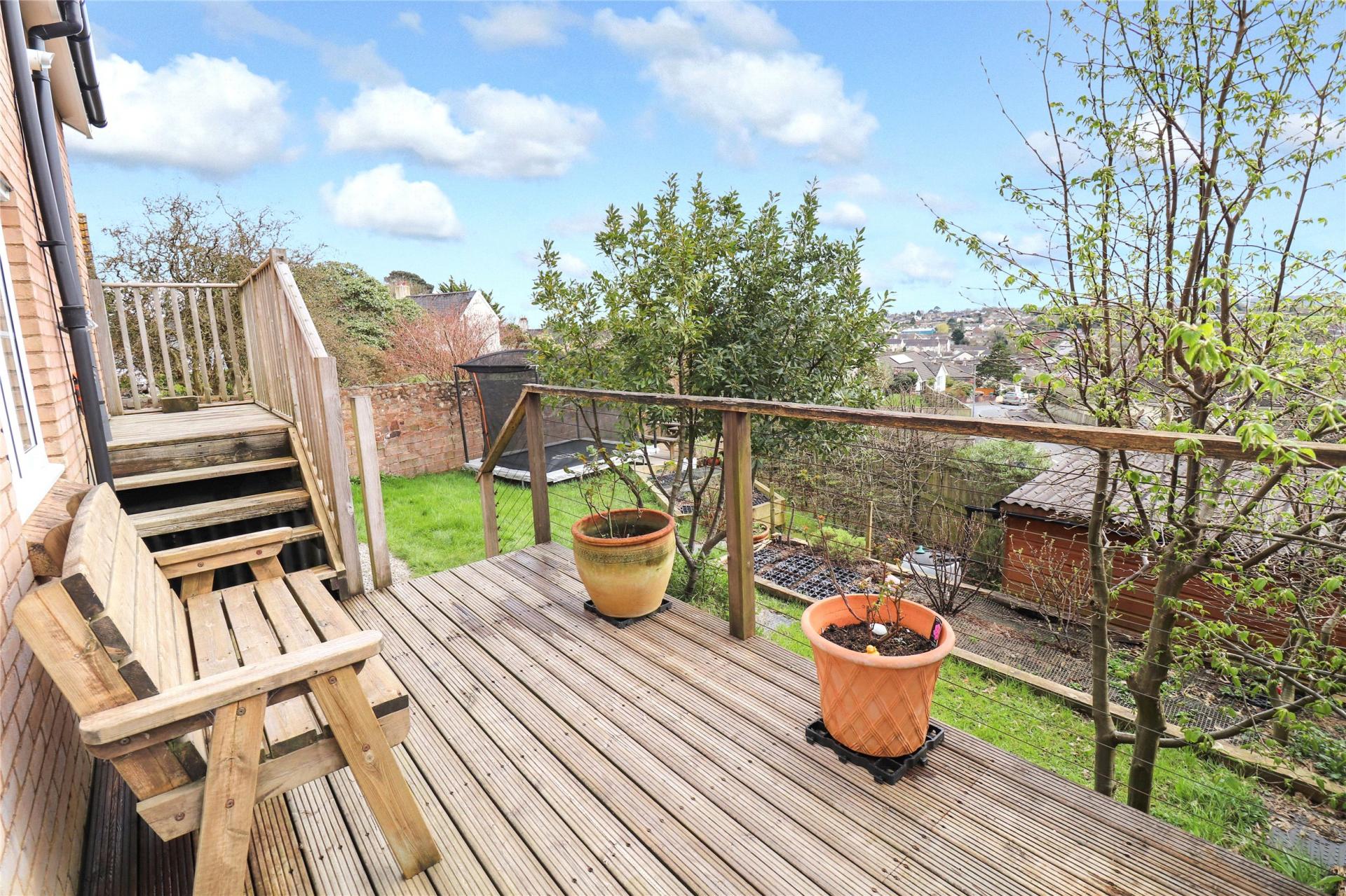 The rear garden if of good size and features a raised decked area, a large level of lawn, estbalished shrubs alongside a convenient garden room currently used an a home office.