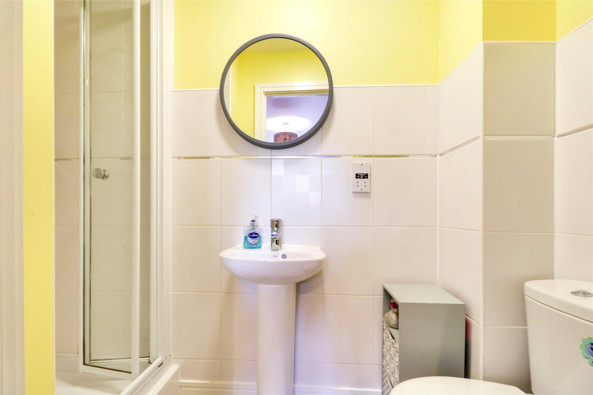 Continuing upward, an additional half staircase leads to two more double bedrooms. The master bedroom comes with the added luxury of an ensuite shower room.