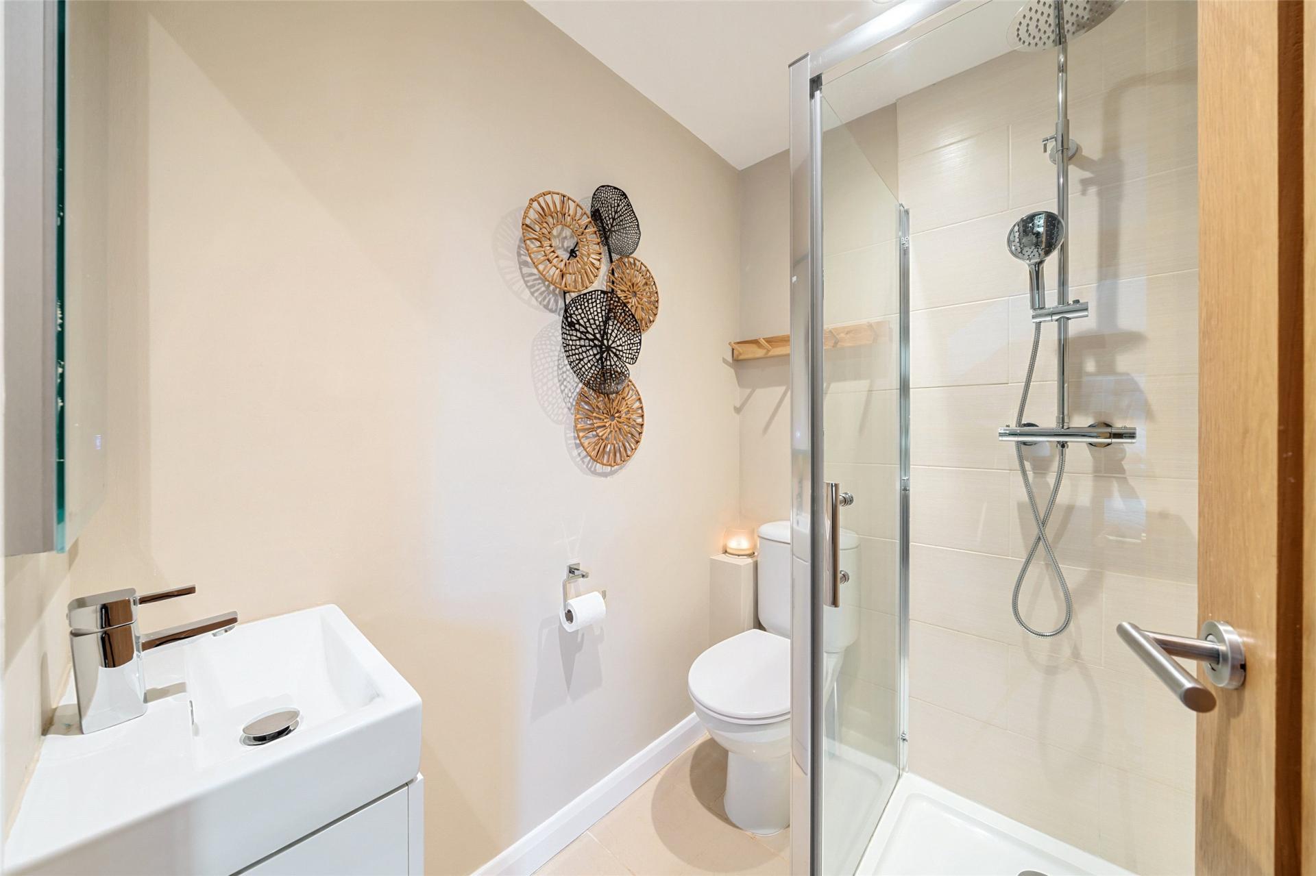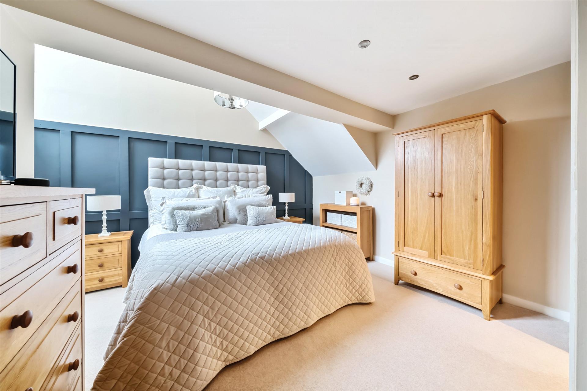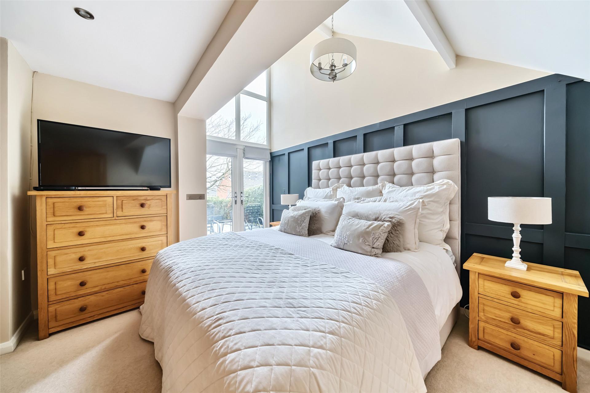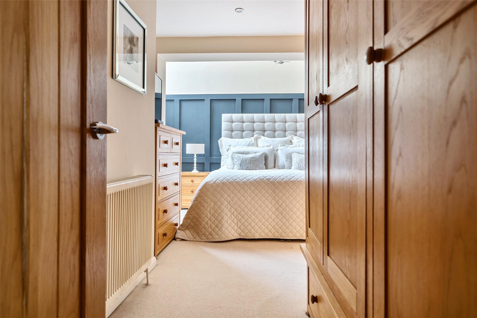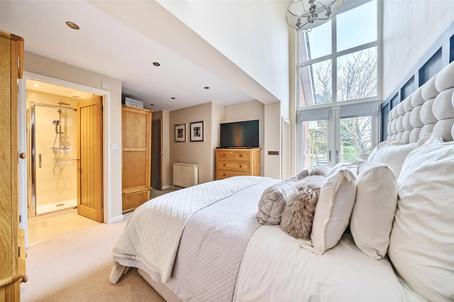 The master bedroom enjoys a double aspect and a part-vaulted ceiling, with a double-height glazed wall and doors that open onto a private, south-facing terrace. It also features an en suite shower room. Bedroom two is a spacious double room with a double aspect, as is bedroom three. Bedroom four is a well-proportioned small double or generous single room.