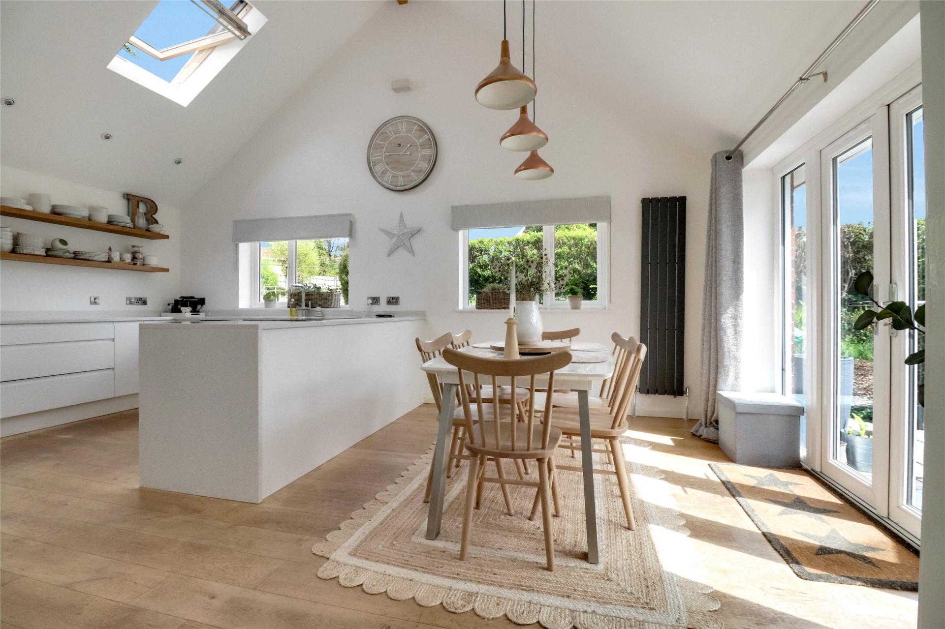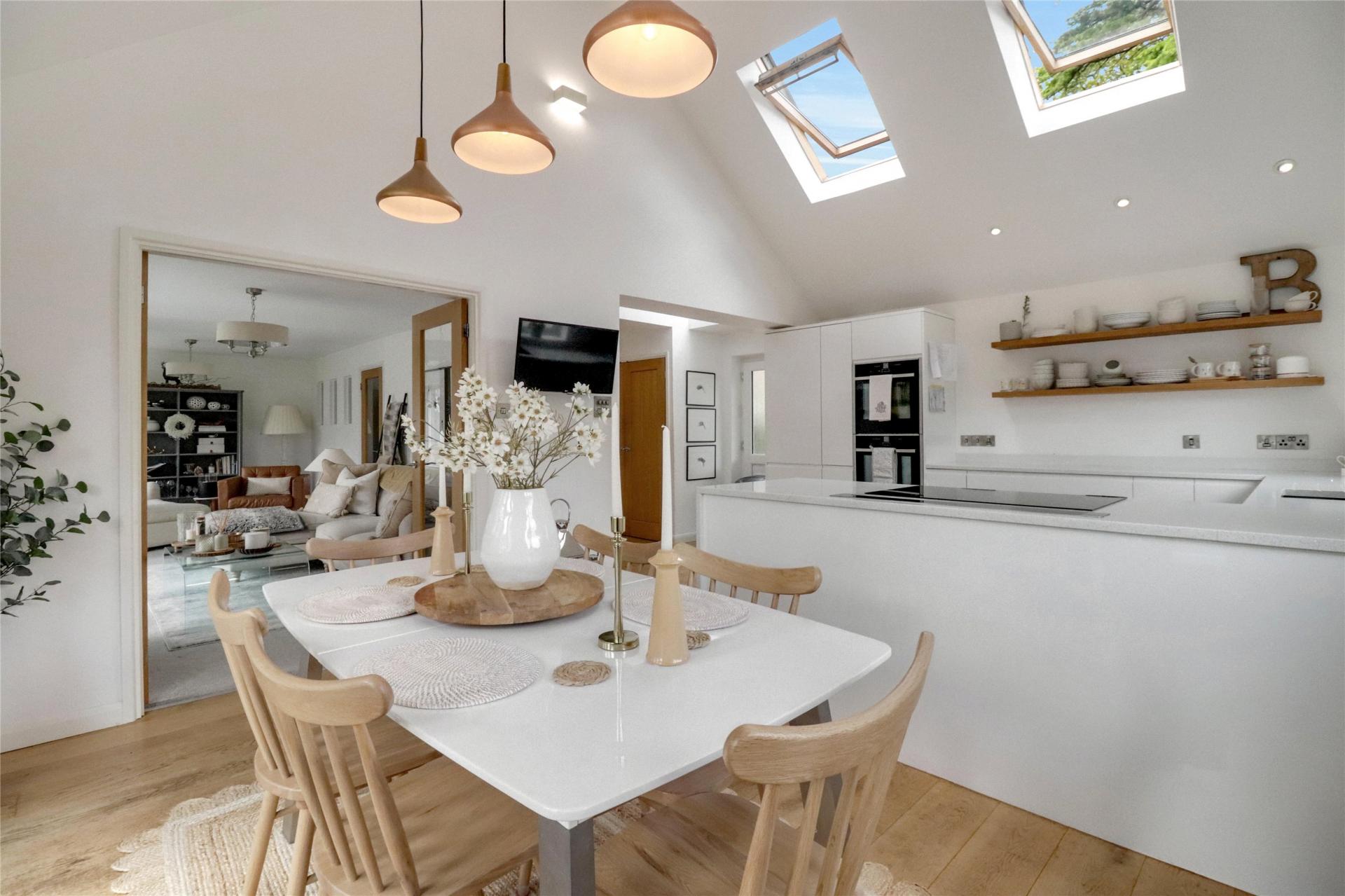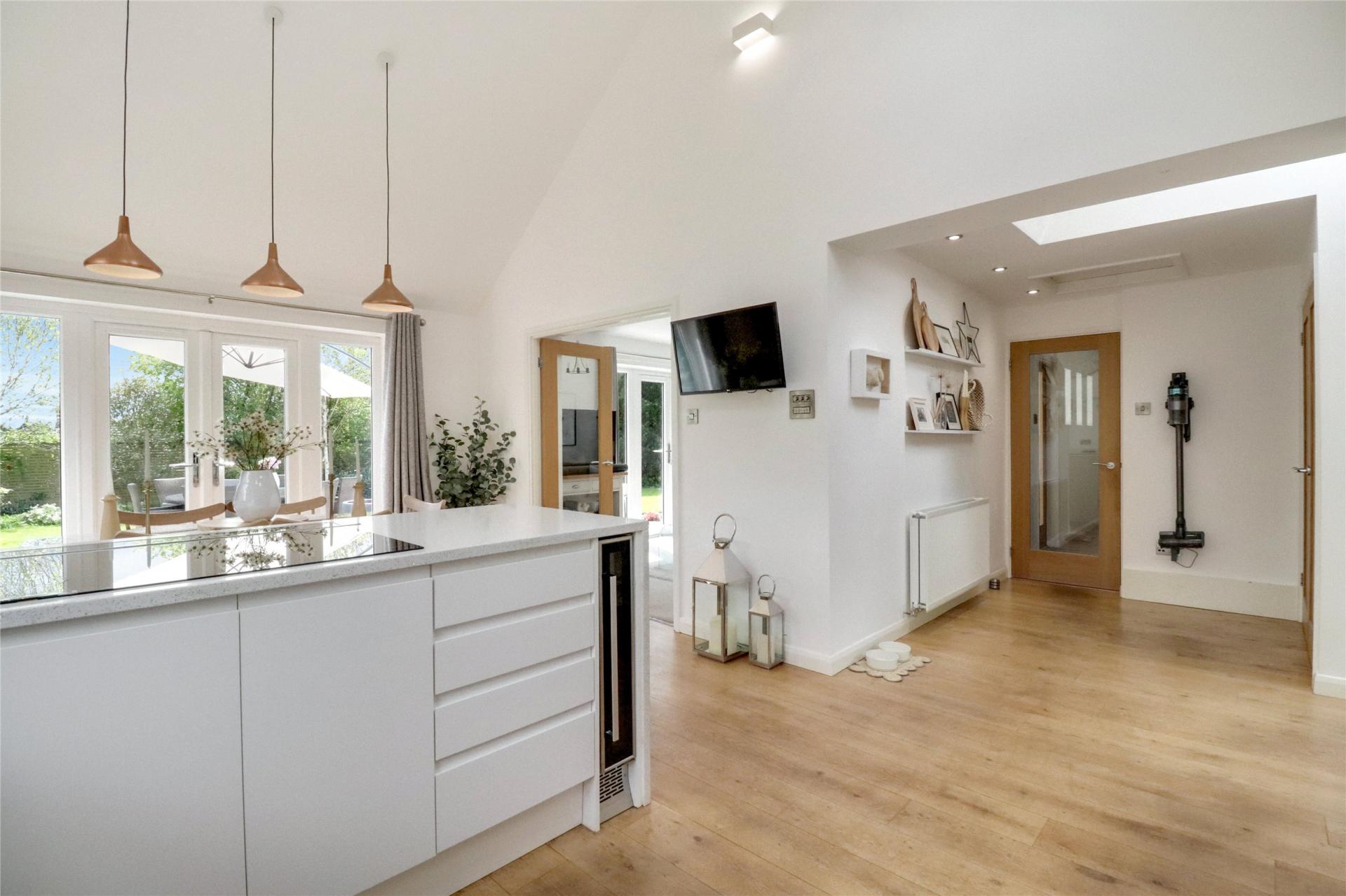 The part-glazed front door opens into the entrance hall, which leads to a further hallway with a storage cupboard and access to all principal accommodation. At the heart of the home is the stunning, triple-aspect kitchen and dining room. This impressive space is a bright and contemporary family living area.