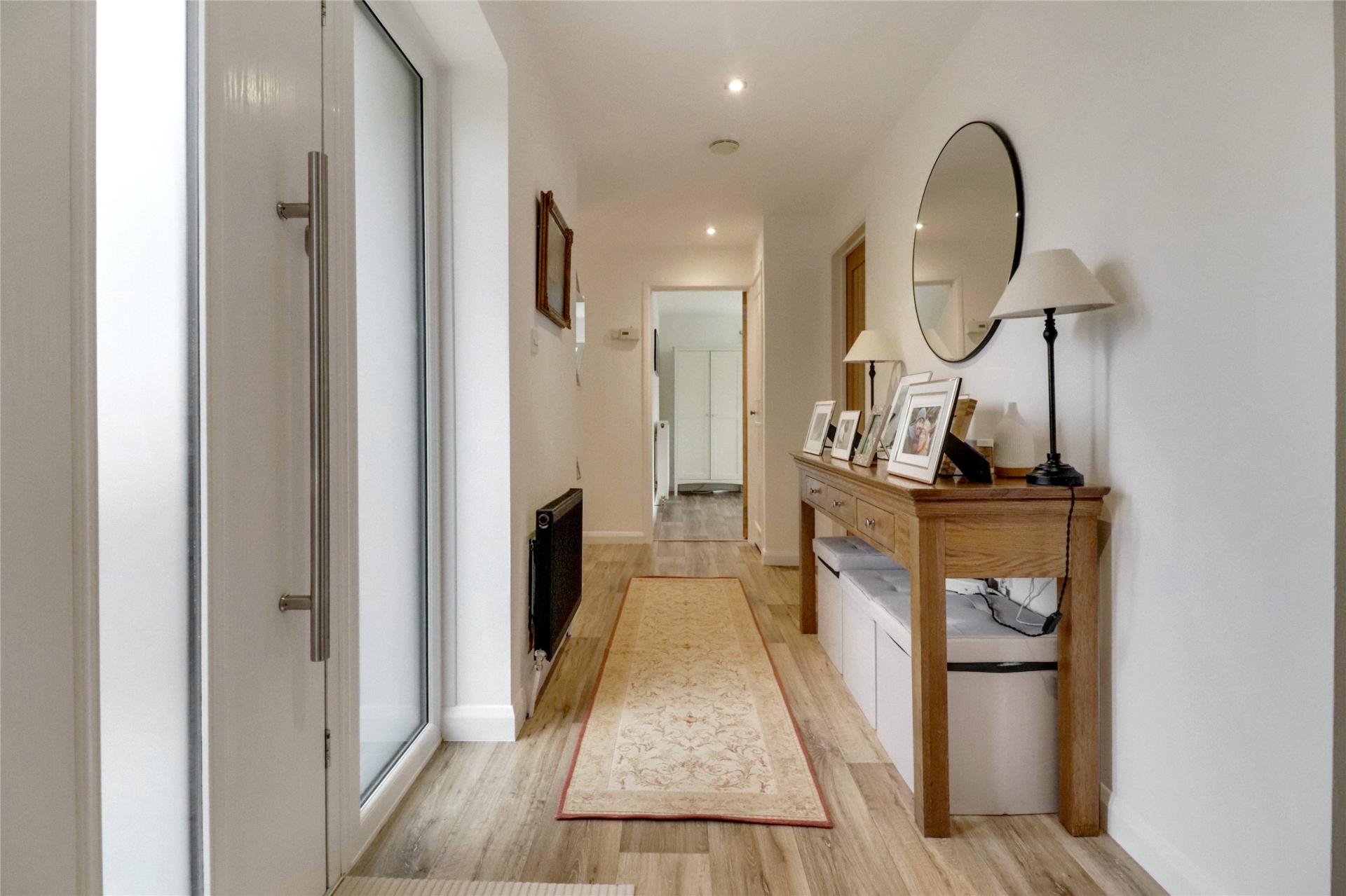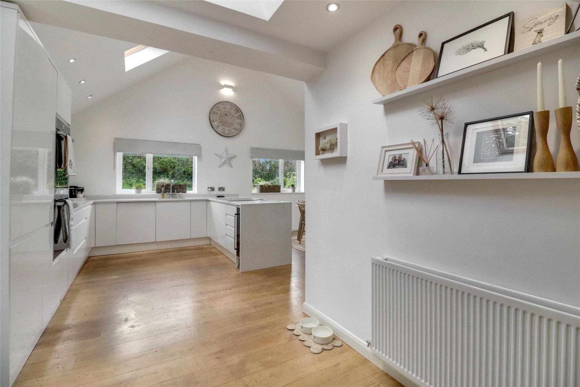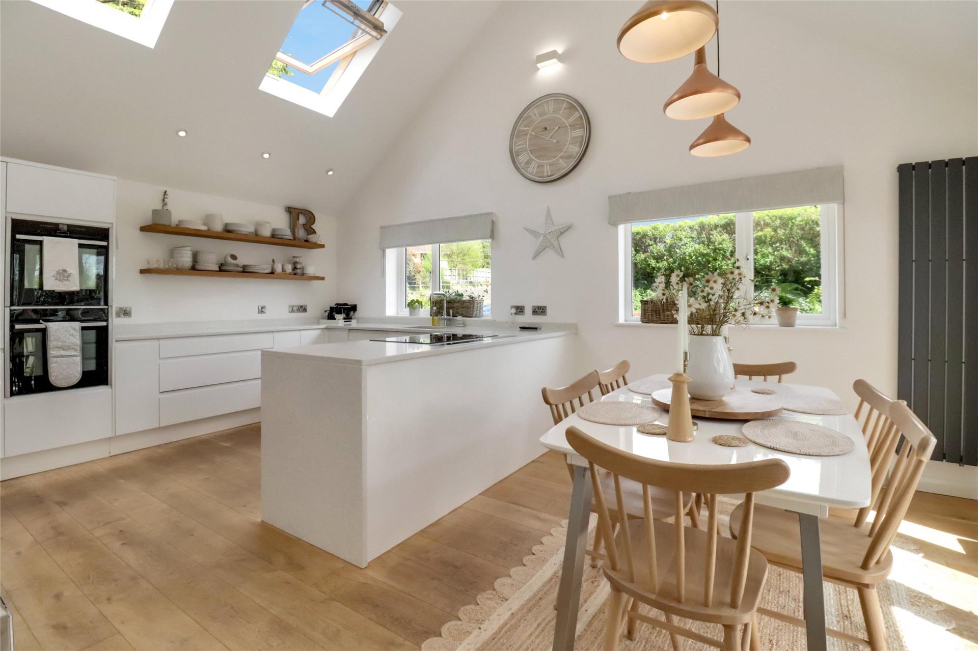 The part-glazed front door opens into the entrance hall, which leads to a further hallway with a storage cupboard and access to all principal accommodation. At the heart of the home is the stunning, triple-aspect kitchen and dining room. This impressive space is a bright and contemporary family living area.