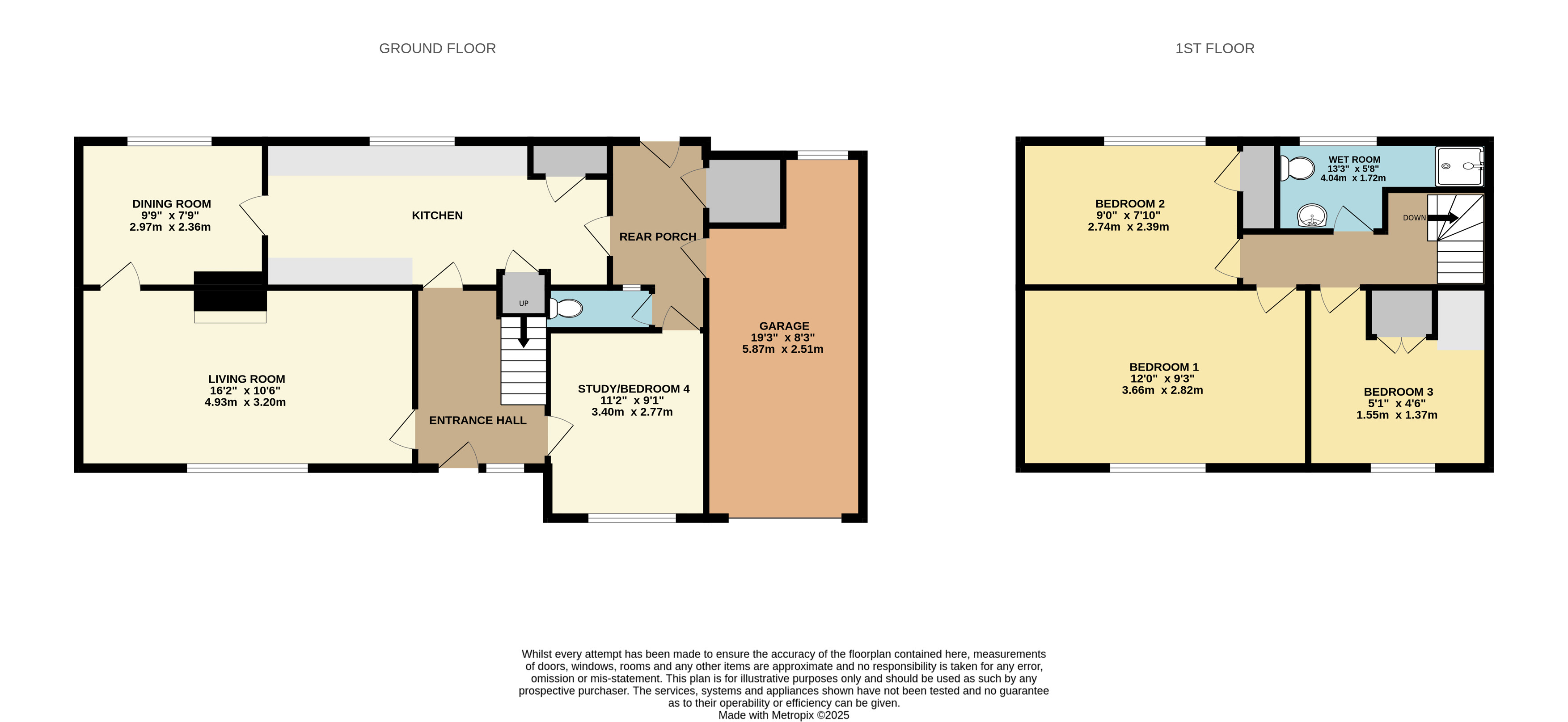 Approached via the driveway, the front door opens into a welcoming entrance hall with stairs rising to the first floor. On the ground floor there are three well-proportioned reception rooms, a kitchen with useful pantry cupboards, and a rear porch giving access to the garden. There is also a downstairs WC, a storage cupboard which was formerly the coal store, and an internal door leading into the spacious garage measuring 19'3" x 8'3".