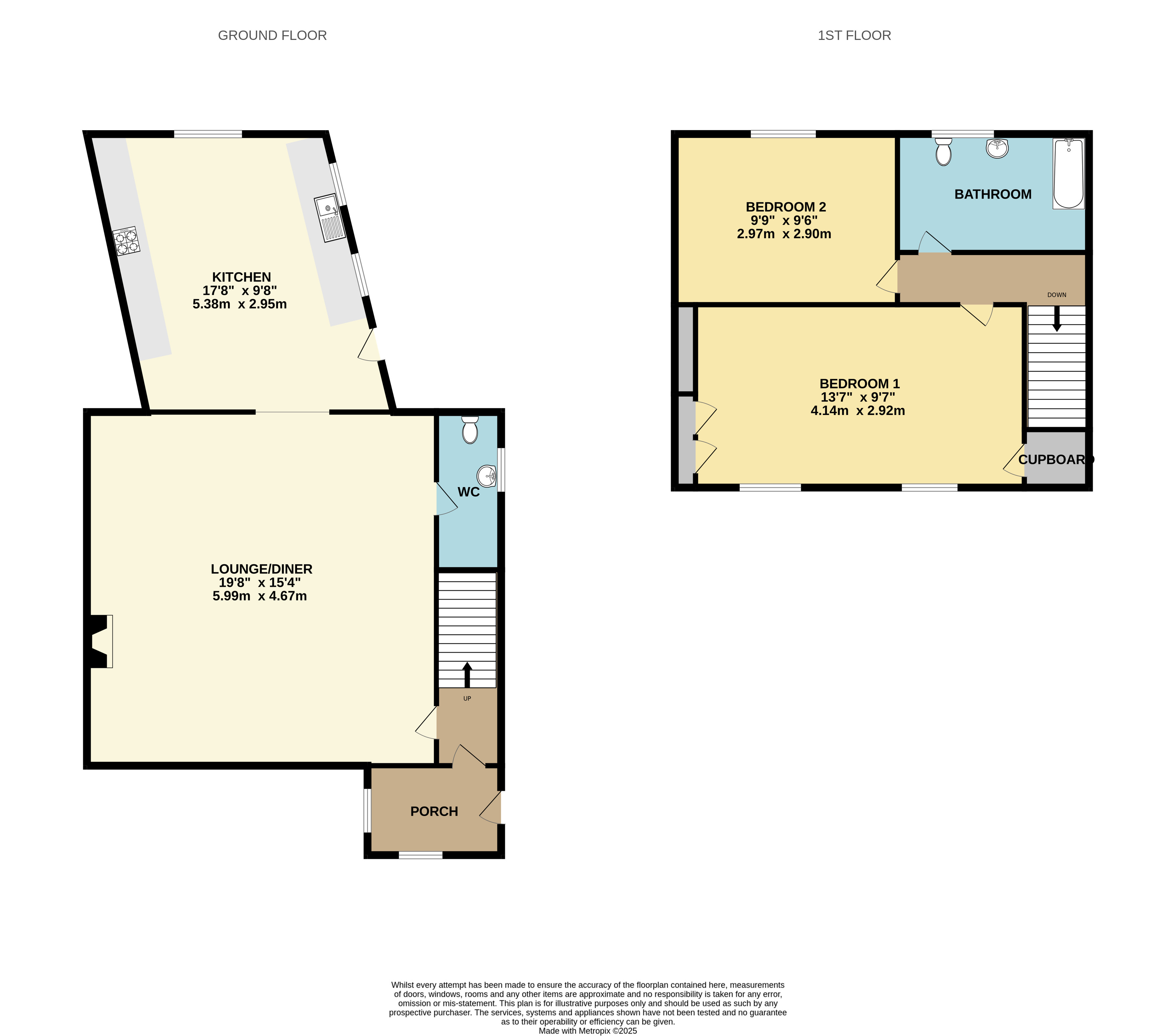 Upstairs, there are two double bedrooms, with the main bedroom benefiting from fitted cupboards, and the second also being double in size.