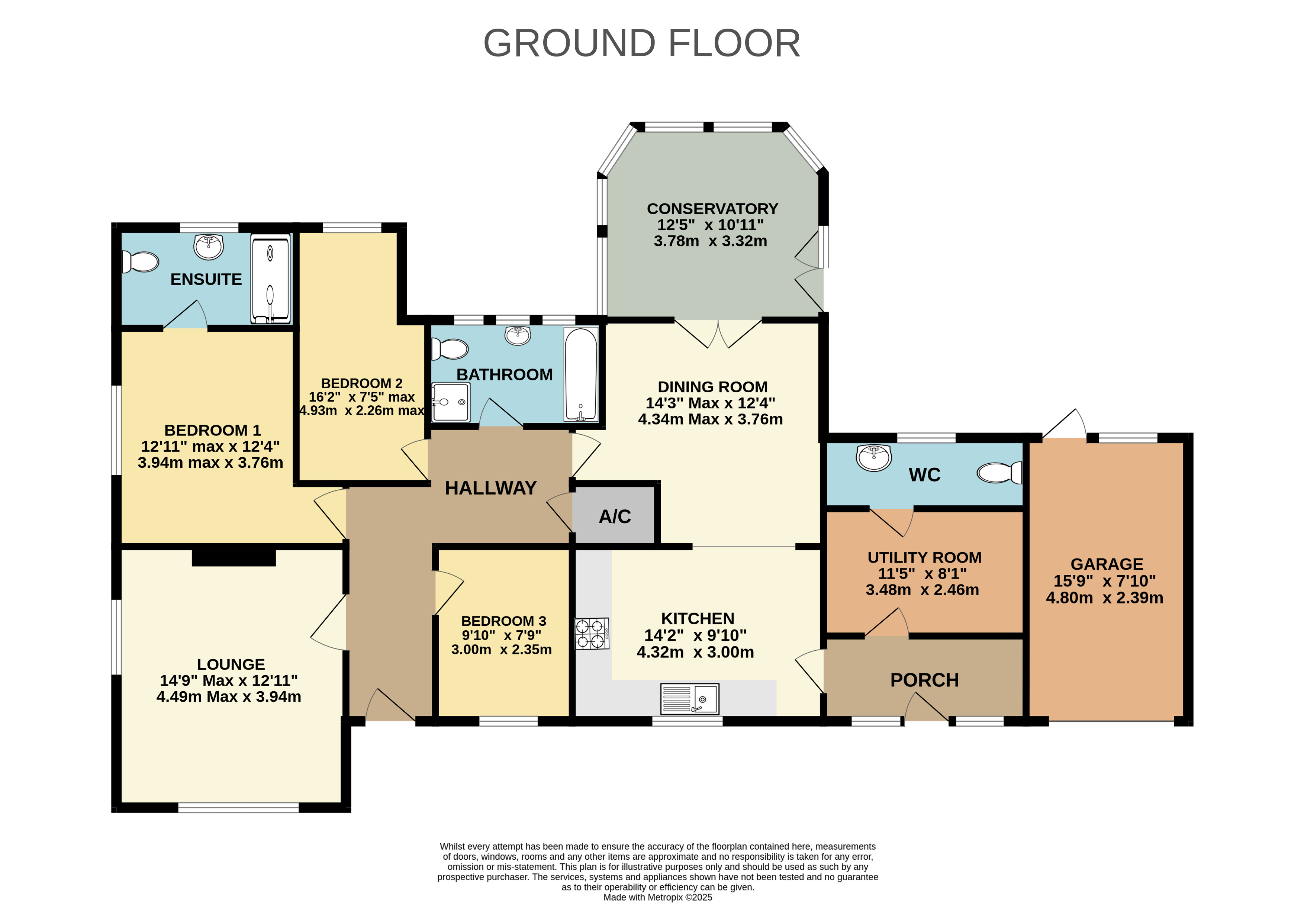 Conservatory 12'5" x 10'11" (3.78m x 3.33m).