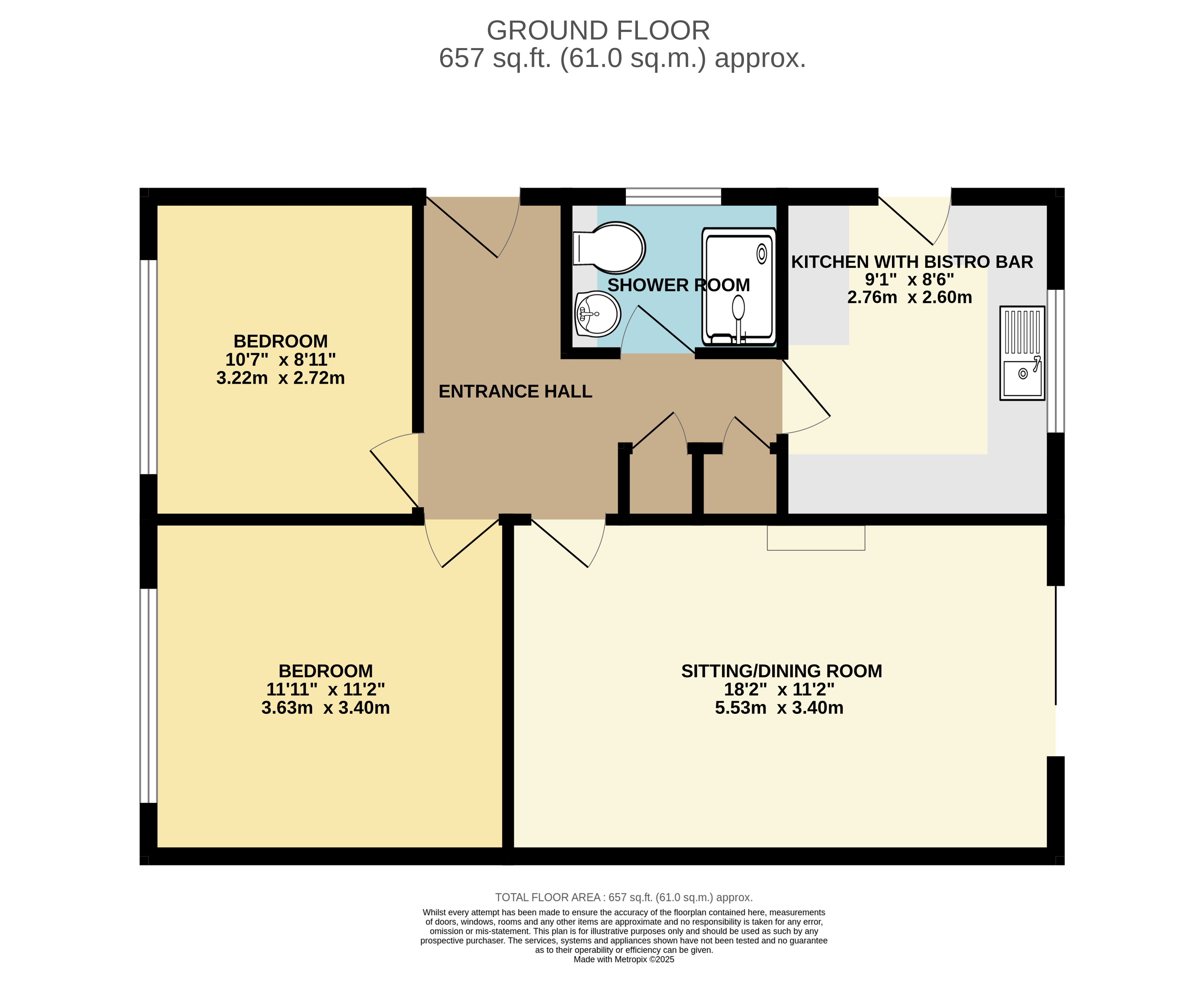 Bedroom 10'7"x8'11" (3.23mx2.72m).