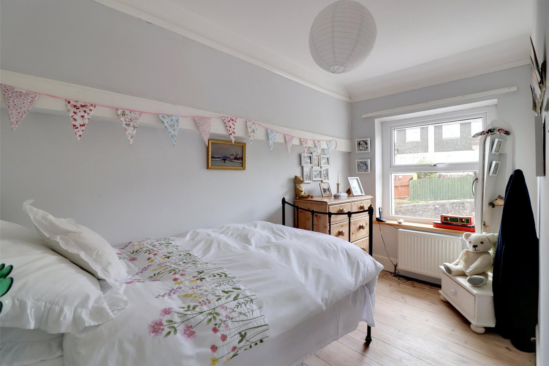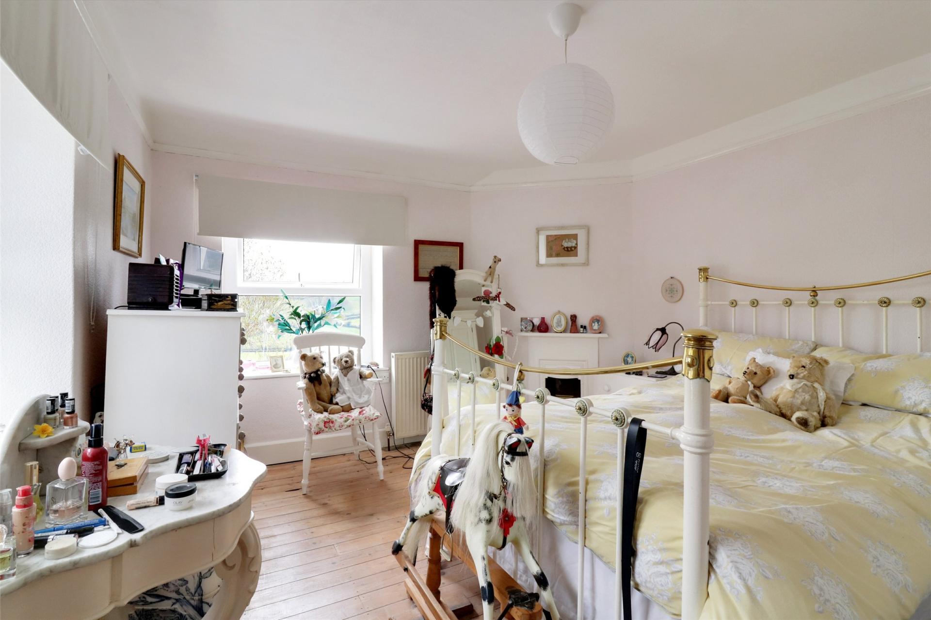 Upstairs, there are two well-proportioned bedrooms. The dual-aspect master bedroom features a charming fireplace and enjoys sweeping views over the surrounding countryside. The family bathroom includes a three-piece suite with a bath and shower attachment, vanity wash basin, WC, and an airing cupboard.