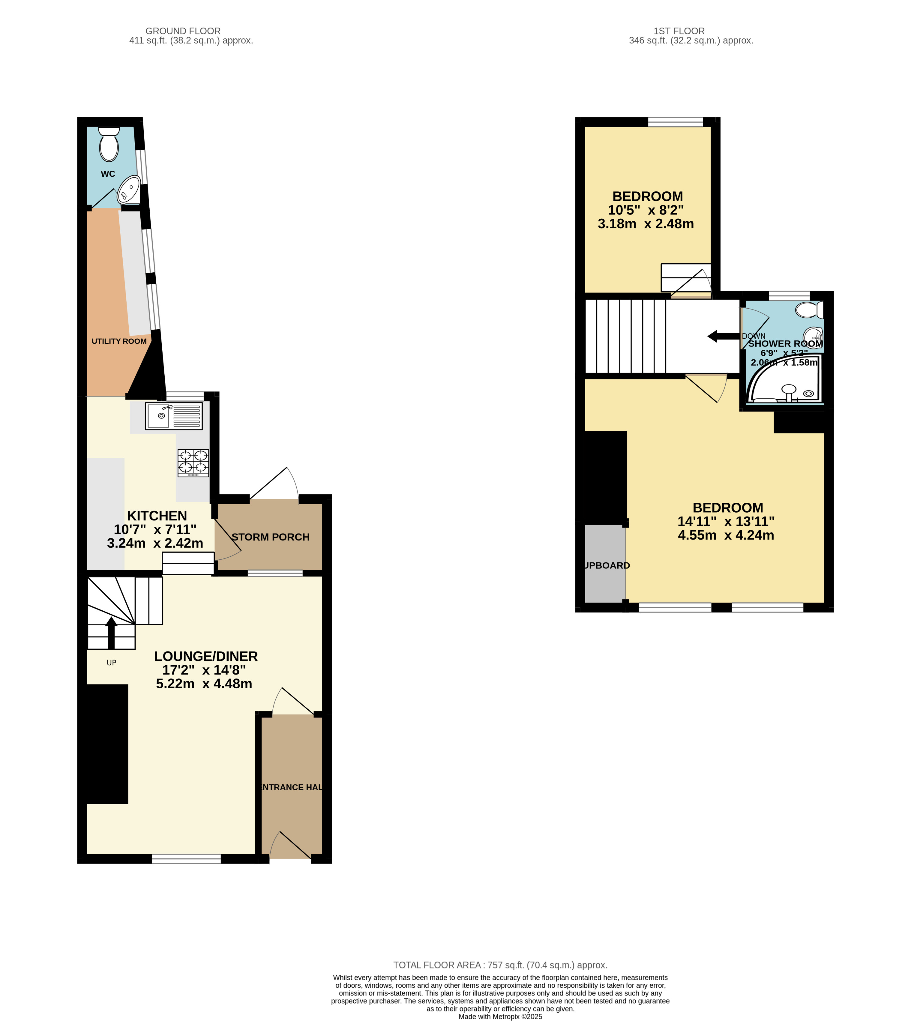 Shower Room 6'9"x5'2" (2.06mx1.57m).