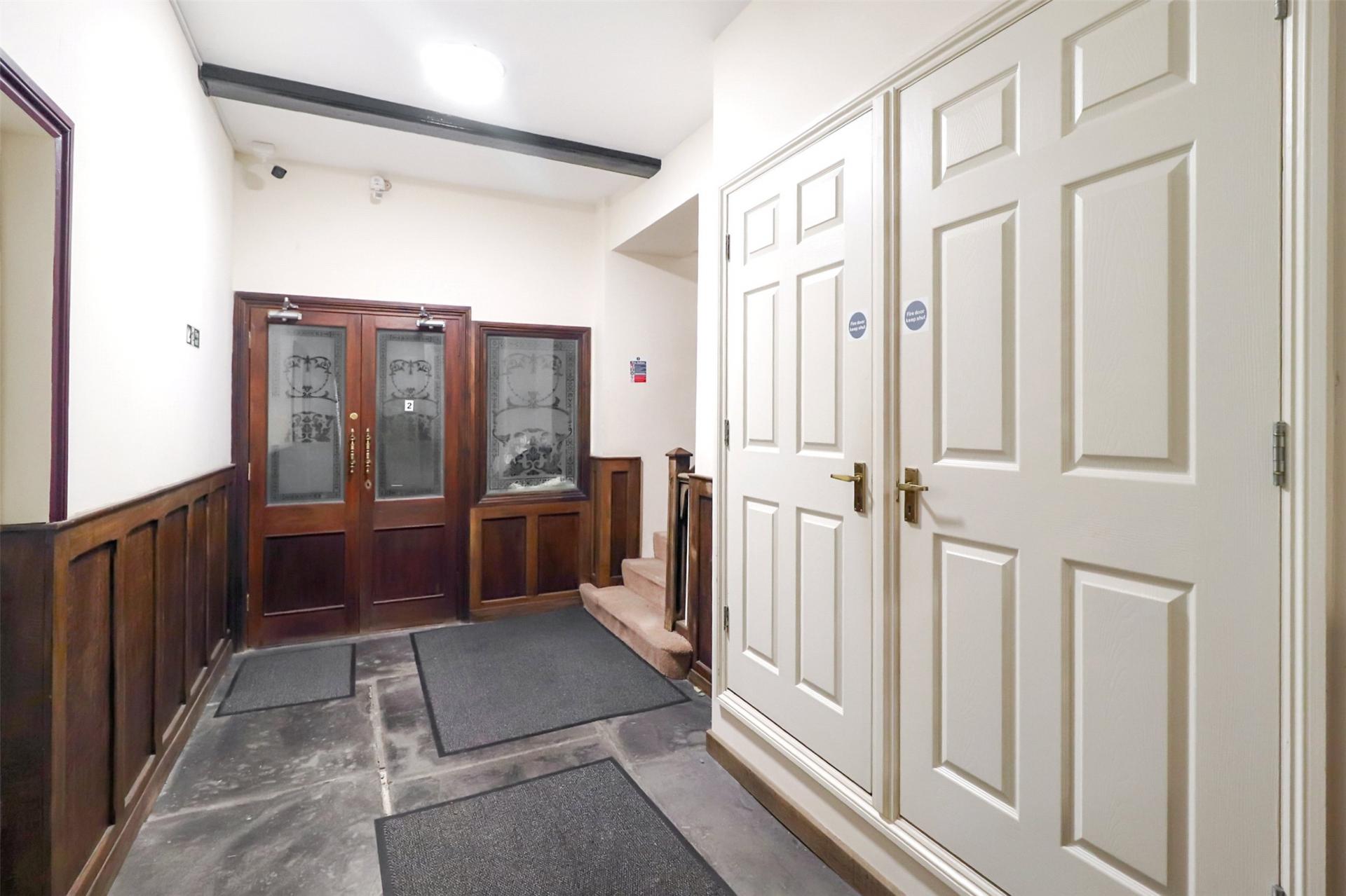 On entering the building, a welcoming communal hallway leads past the letter boxes and oak panelling and up the sweeping staircase to the entrance door into number 5.