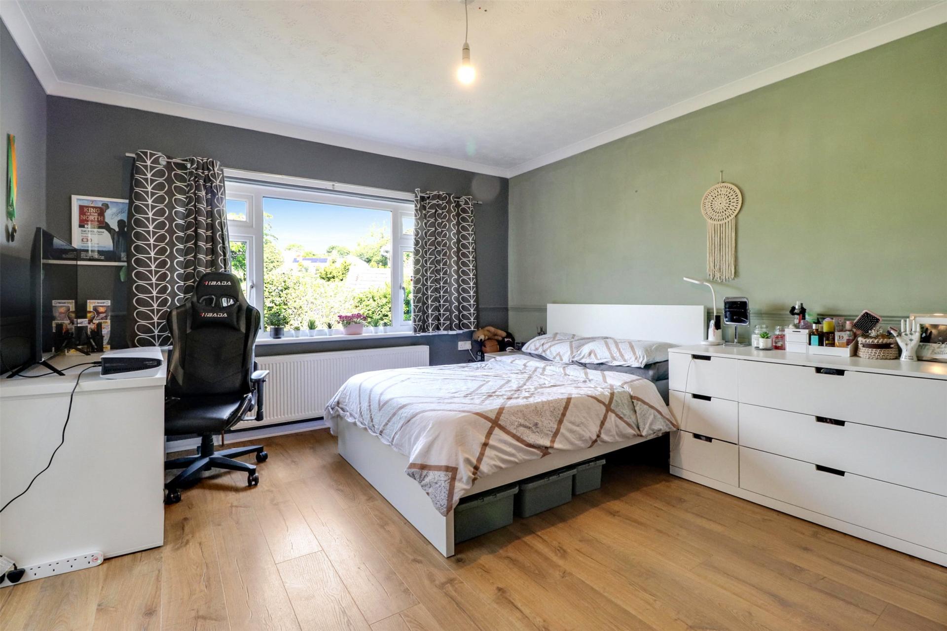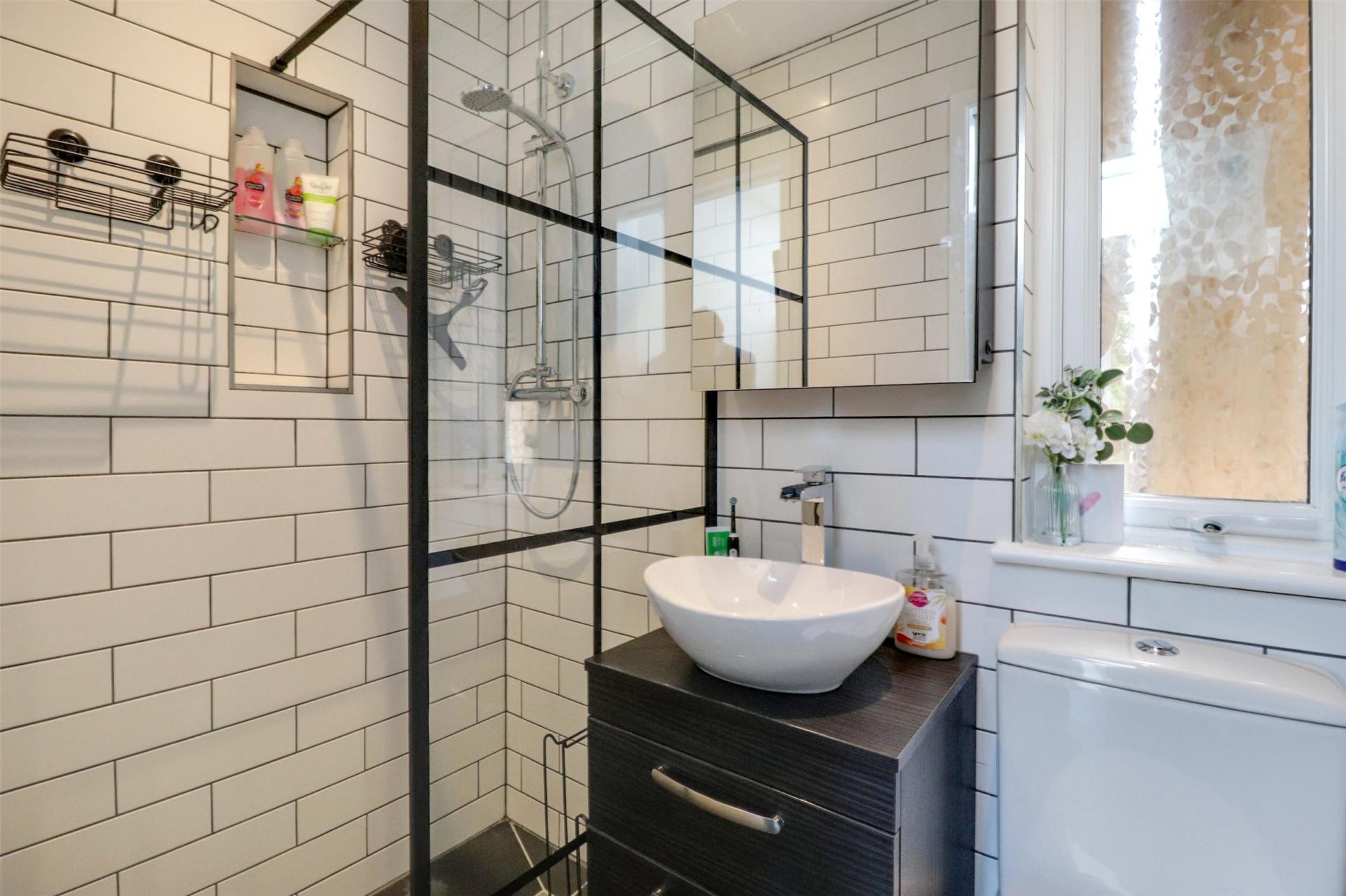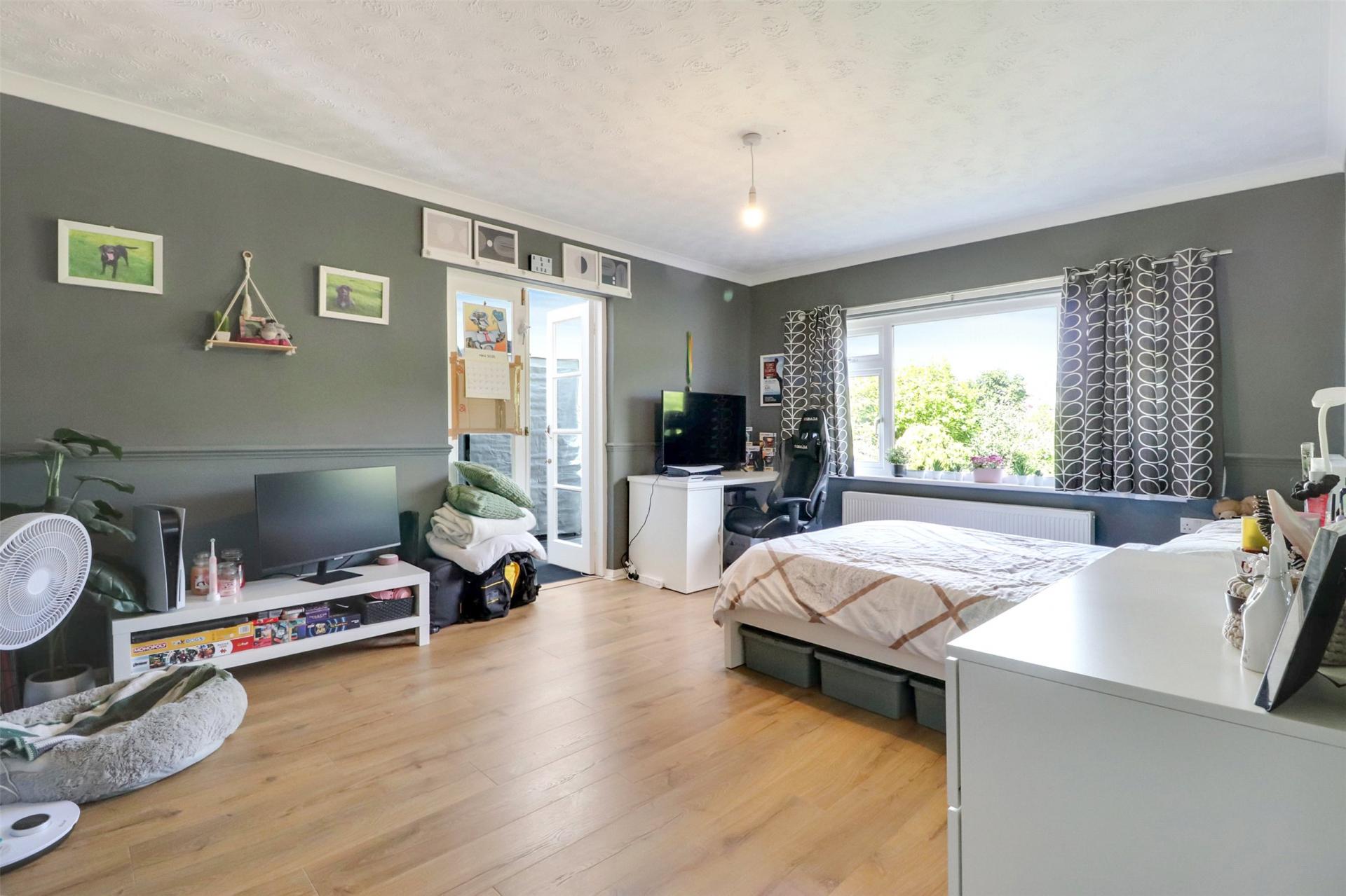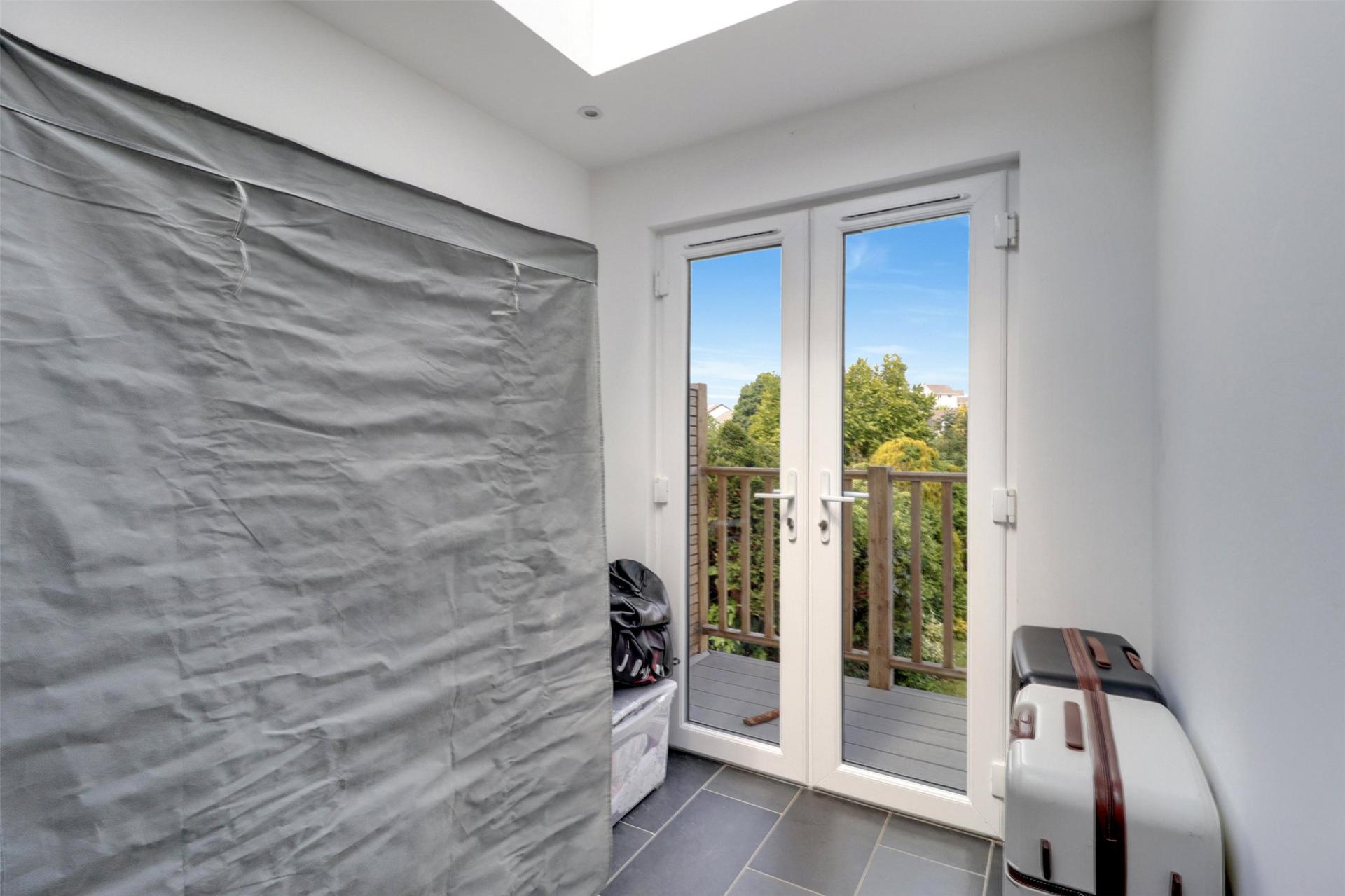 The original separate dining room has been thoughtfully repurposed into a generous ground-floor double bedroom, also benefitting from rear garden views. Double doors open into a versatile sun room or dressing area, which in turn provides access either to the garden via French doors or to a stylish modern wet room through a sliding door. The wet room includes a close-coupled WC, wash basin, and a walk-in shower.