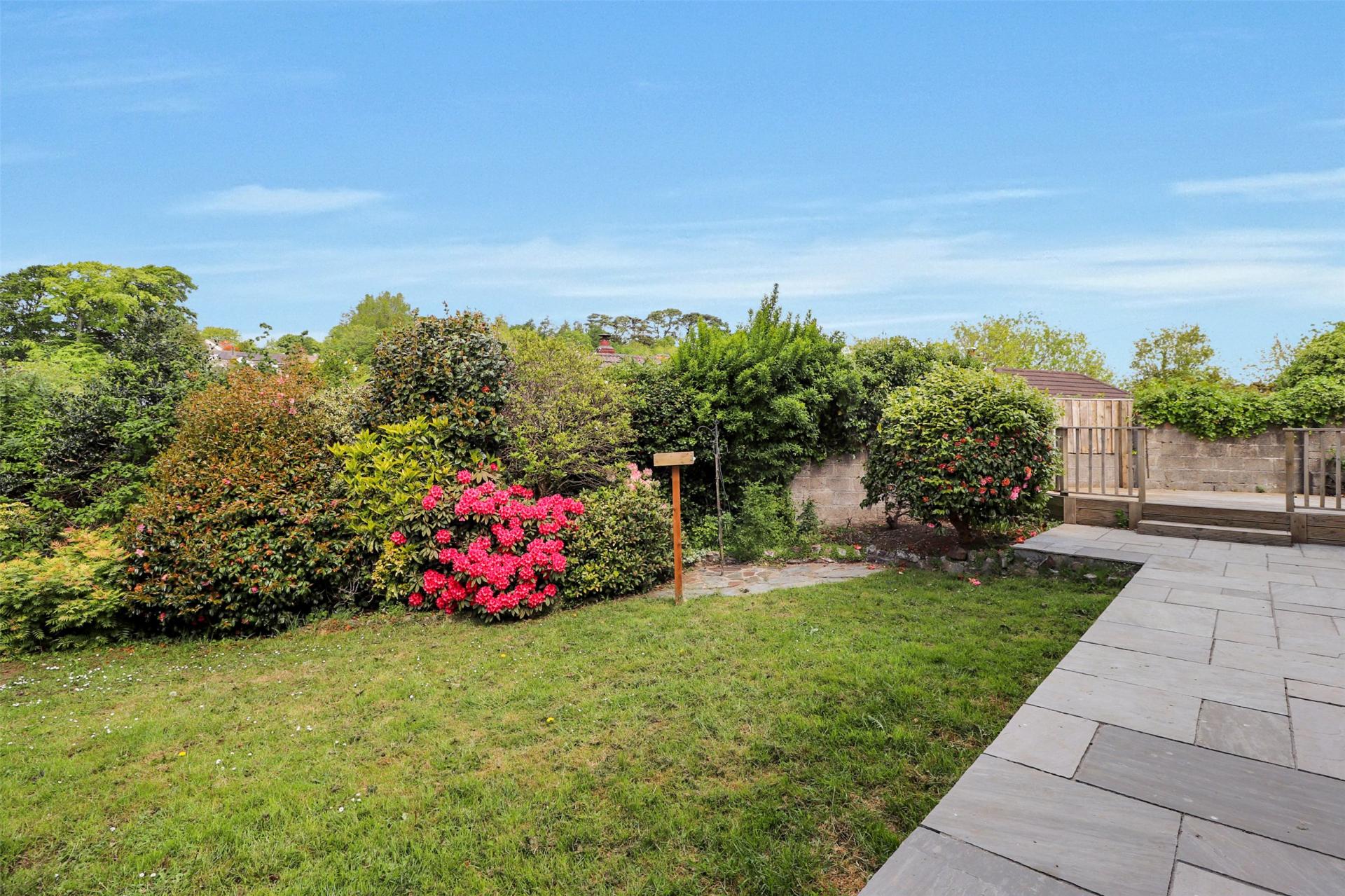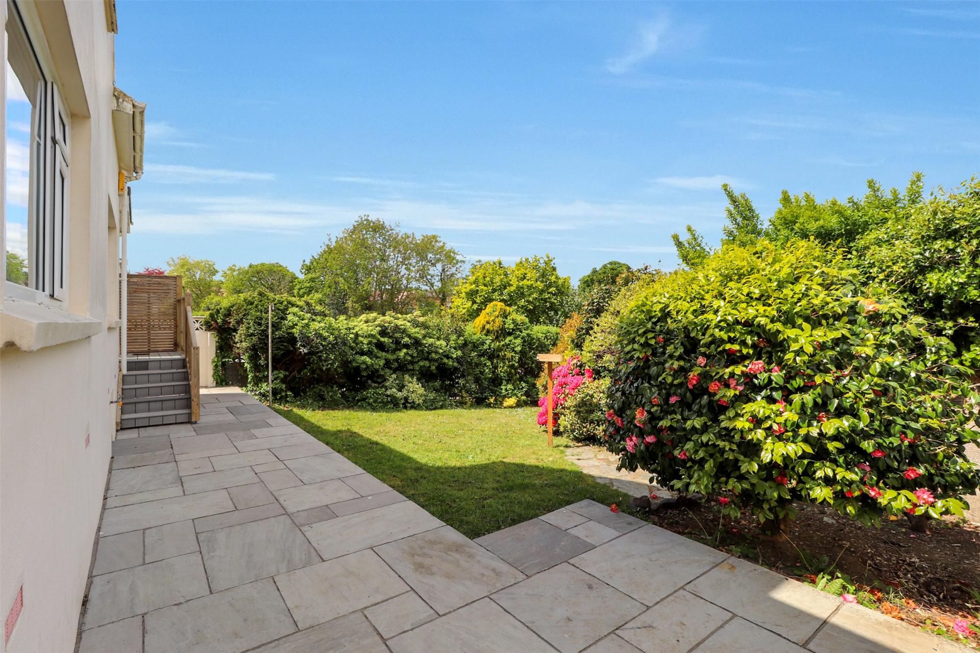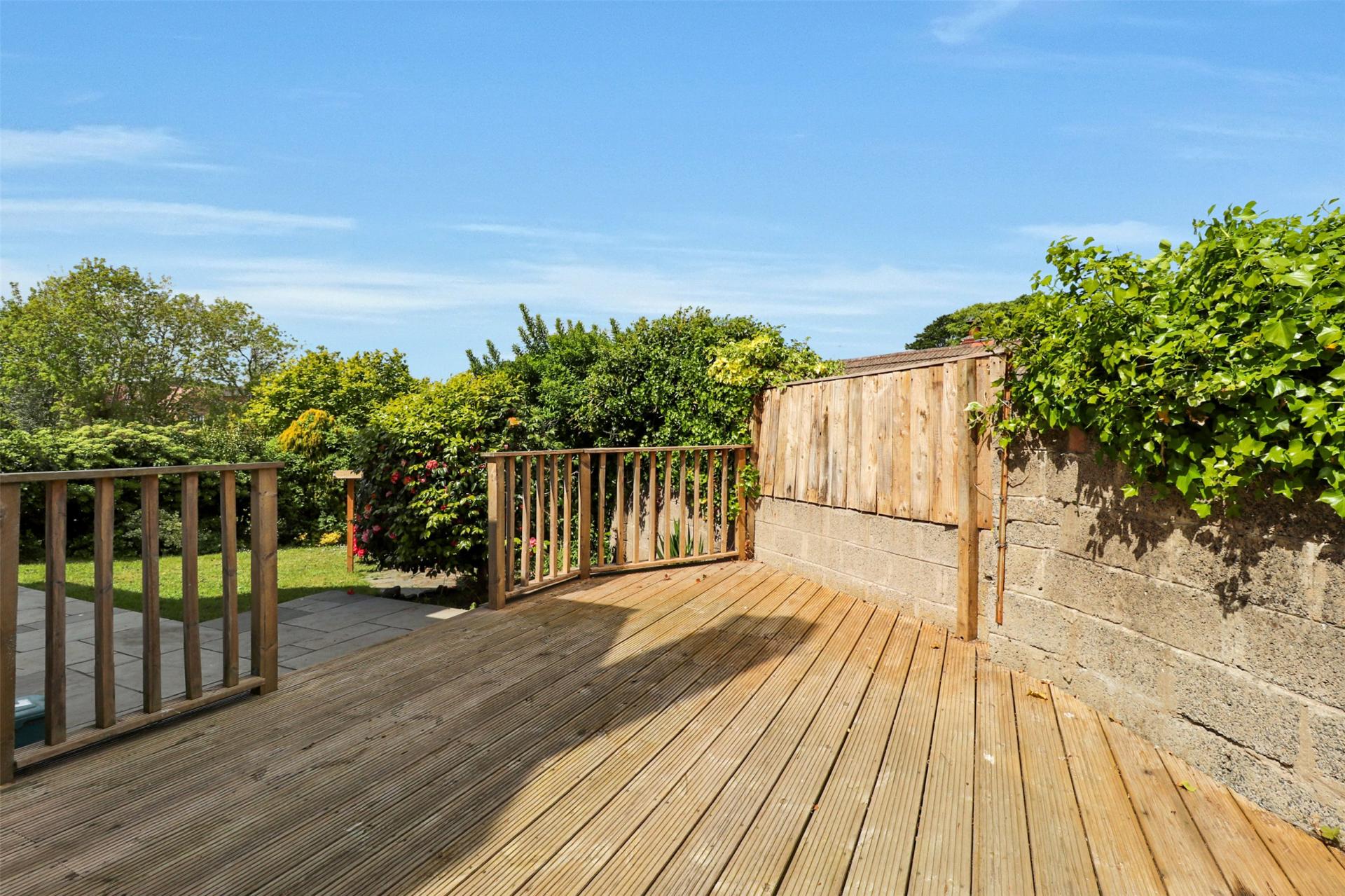 Outside, the generous rear garden is fully enclosed and enjoys a high degree of privacyideal for families or those who love to entertain. A raised decking area provides the perfect spot for outdoor dining, with space for a table and chairs. Steps lead down to a spacious patio that adjoins the rear of the property, offering additional seating or recreation space. Beyond this lies a well-maintained lawn, all beautifully bordered by mature trees, established shrubs, and colourful flower beds, creating a peaceful and attractive setting