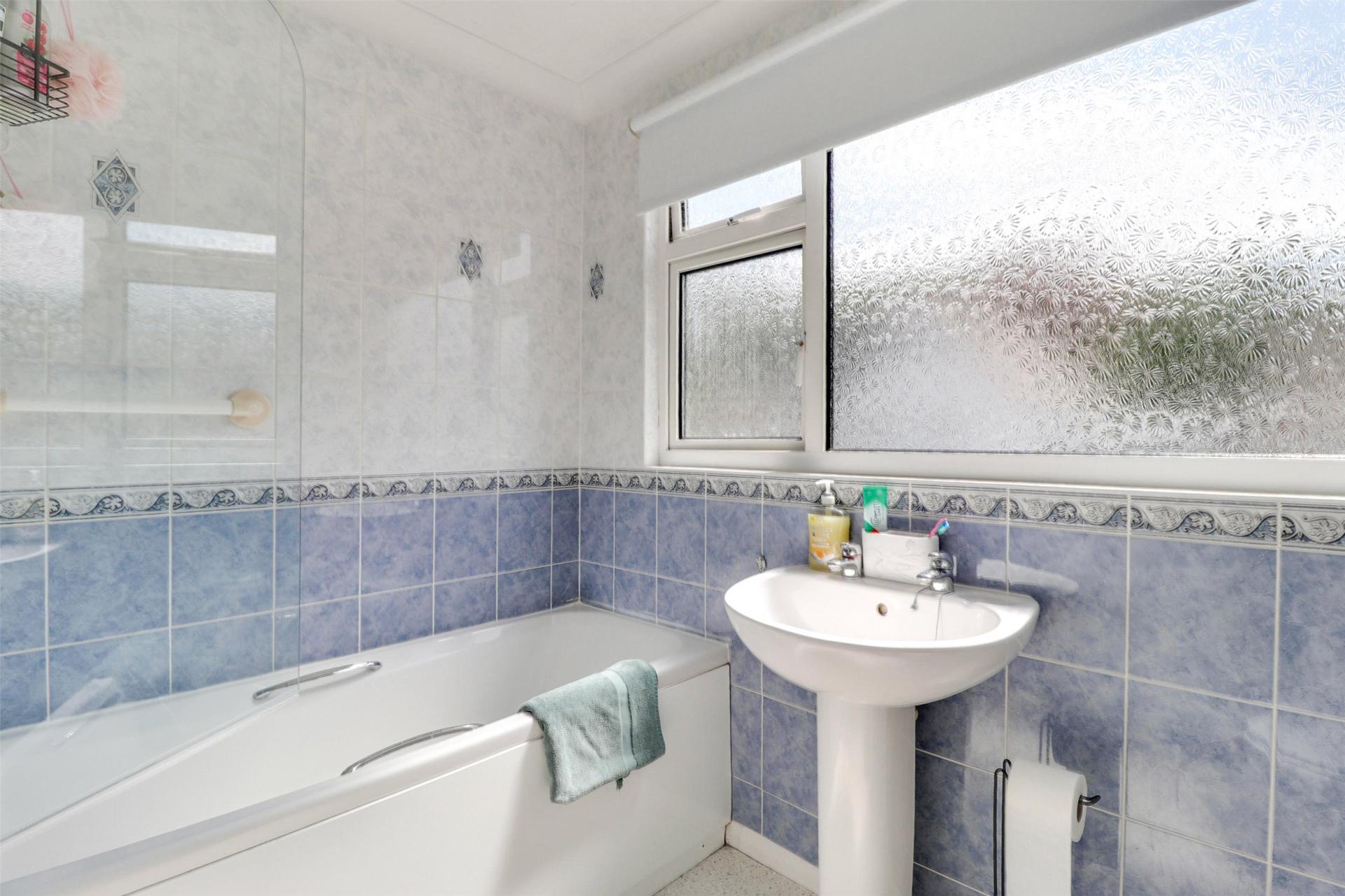 To the first floor, the property offers three well-proportioned double bedrooms. The two largest bedrooms benefit from access to useful eaves storage, providing additional space without compromising room size. The third bedroom, also a comfortable double, enjoys views over the rear garden. Completing the first floor is the main family bathroom, fitted with a WC, hand wash basin, and a bath with shower overideal for family living.