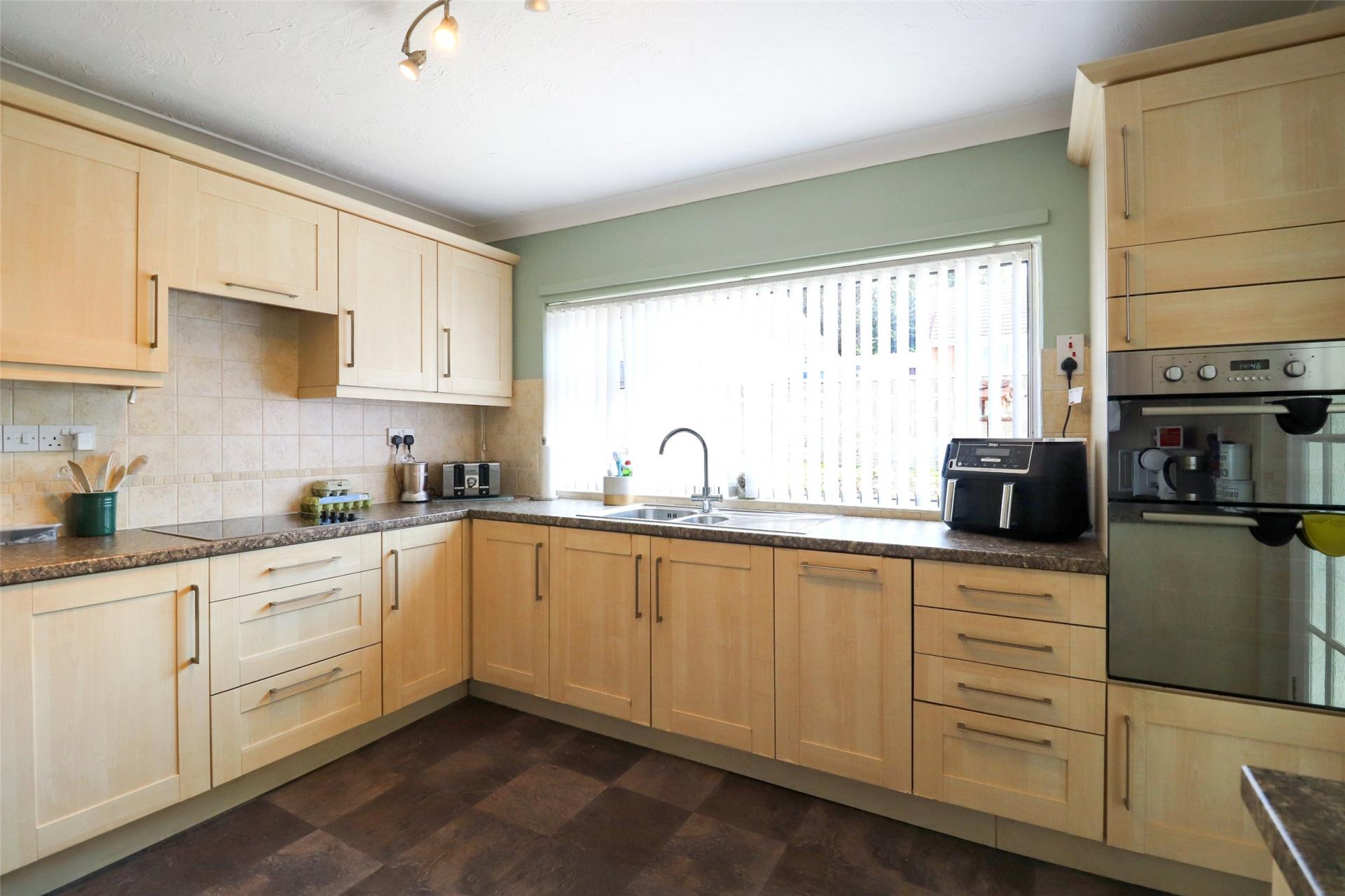 Overlooking the front of the property the kitchen can be found comprising of multiple eye and base level units along with integrated electric oven, hob, fridge and dishwasher. A rear door from the kitchen leads to a useful separate utility room and access to the side of the property.