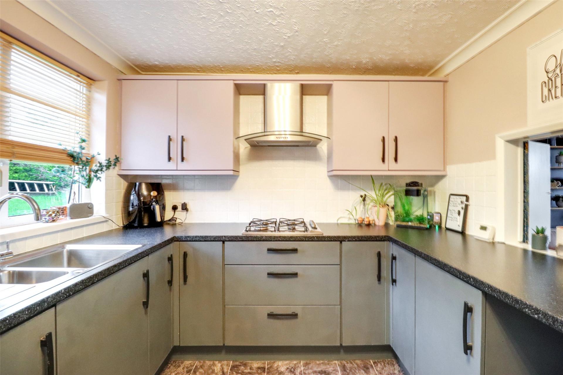 Overlooking the front of the property the modern fitted kitchen comprises of multiple eye and base level units including integrated electric oven, gas hob with extractor over and space for washing appliances.