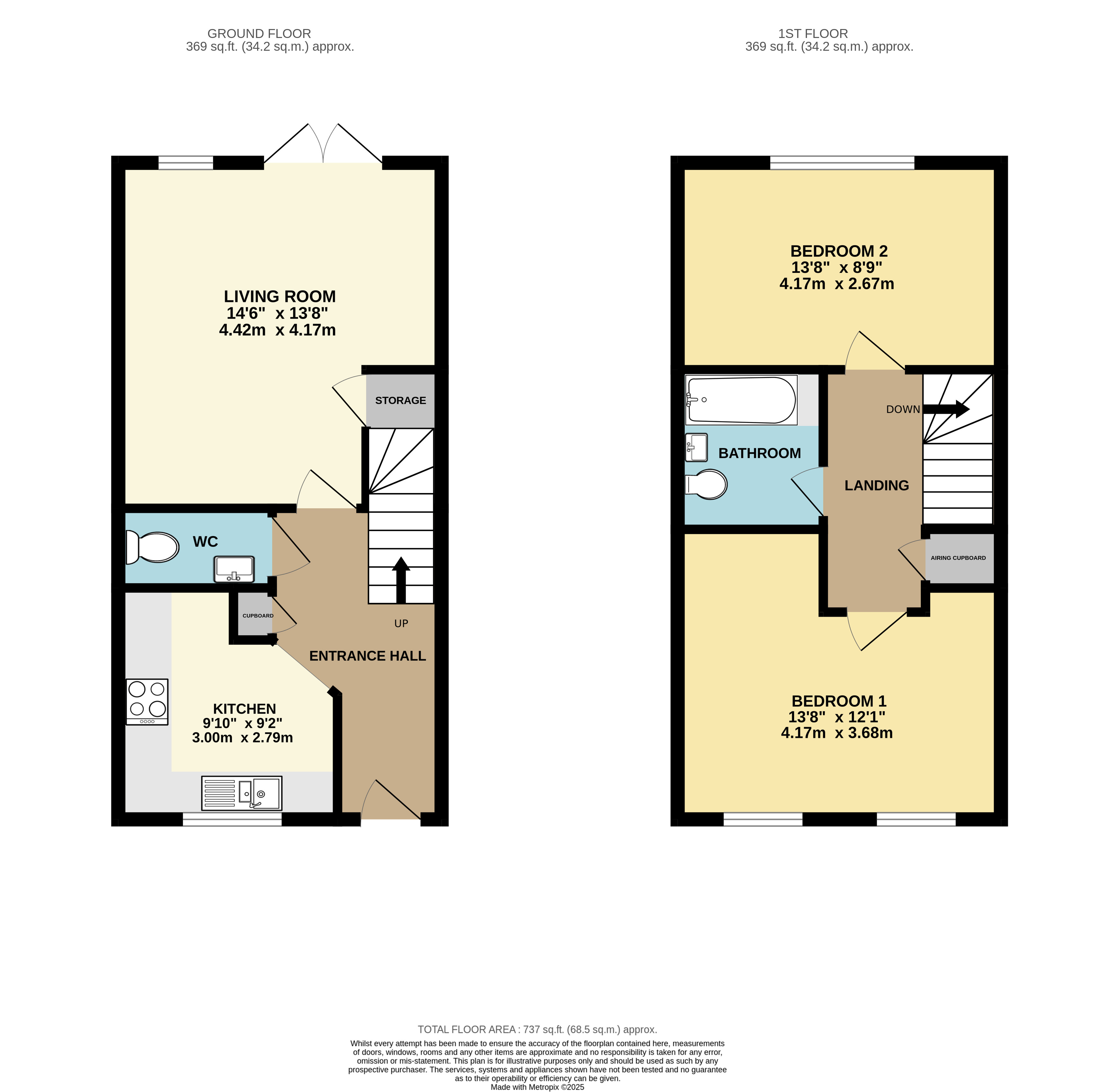 Master Bedroom 13'8" x 12'1" (4.17m x 3.68m).