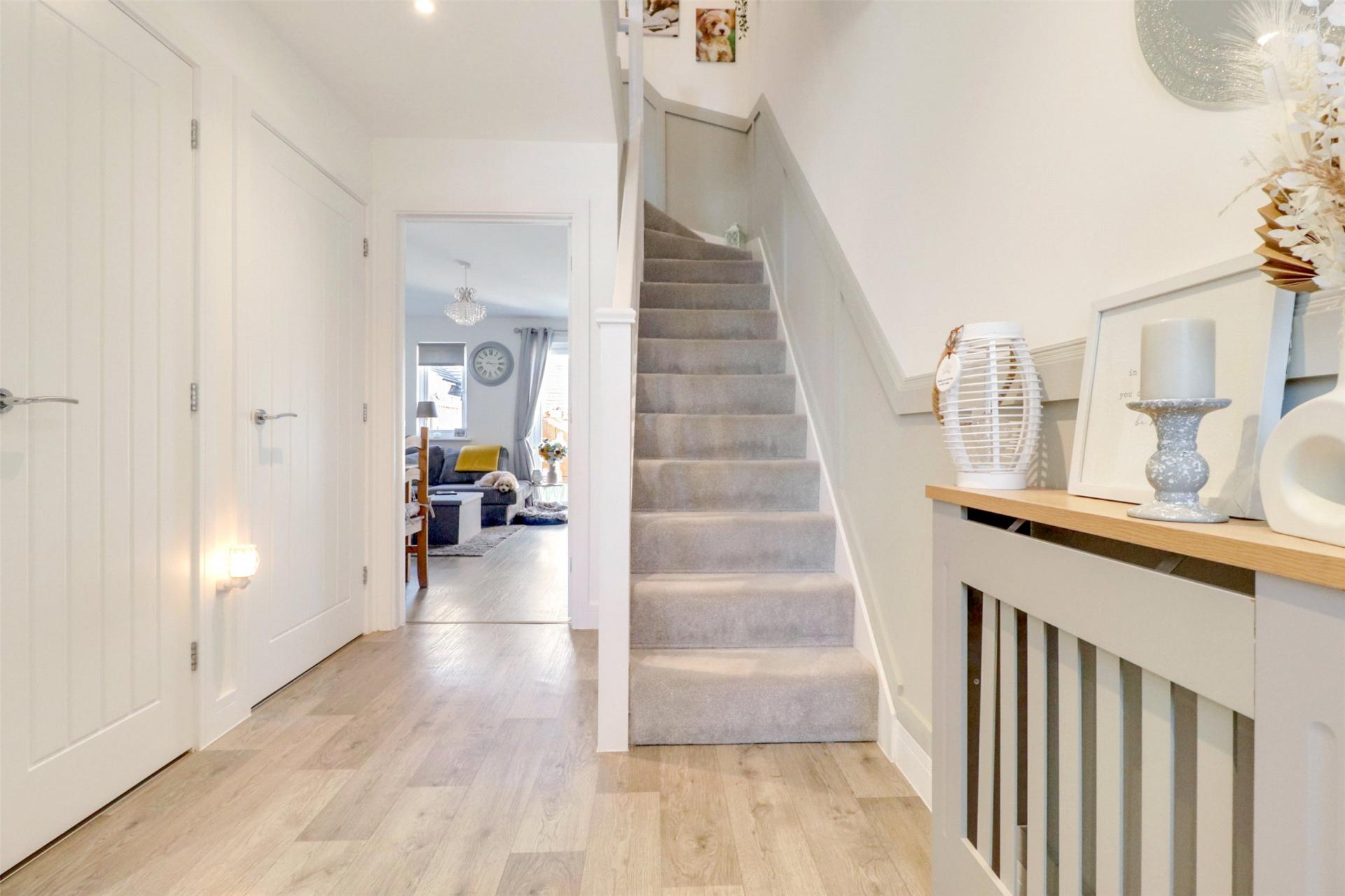 Step into 24 Pridham Place and be welcomed by a bright, airy entrance hallway that sets the tone for this inviting home. To the left, the kitchen showcases sleek cabinetry and high-quality integrated appliances, combining style with everyday practicality.