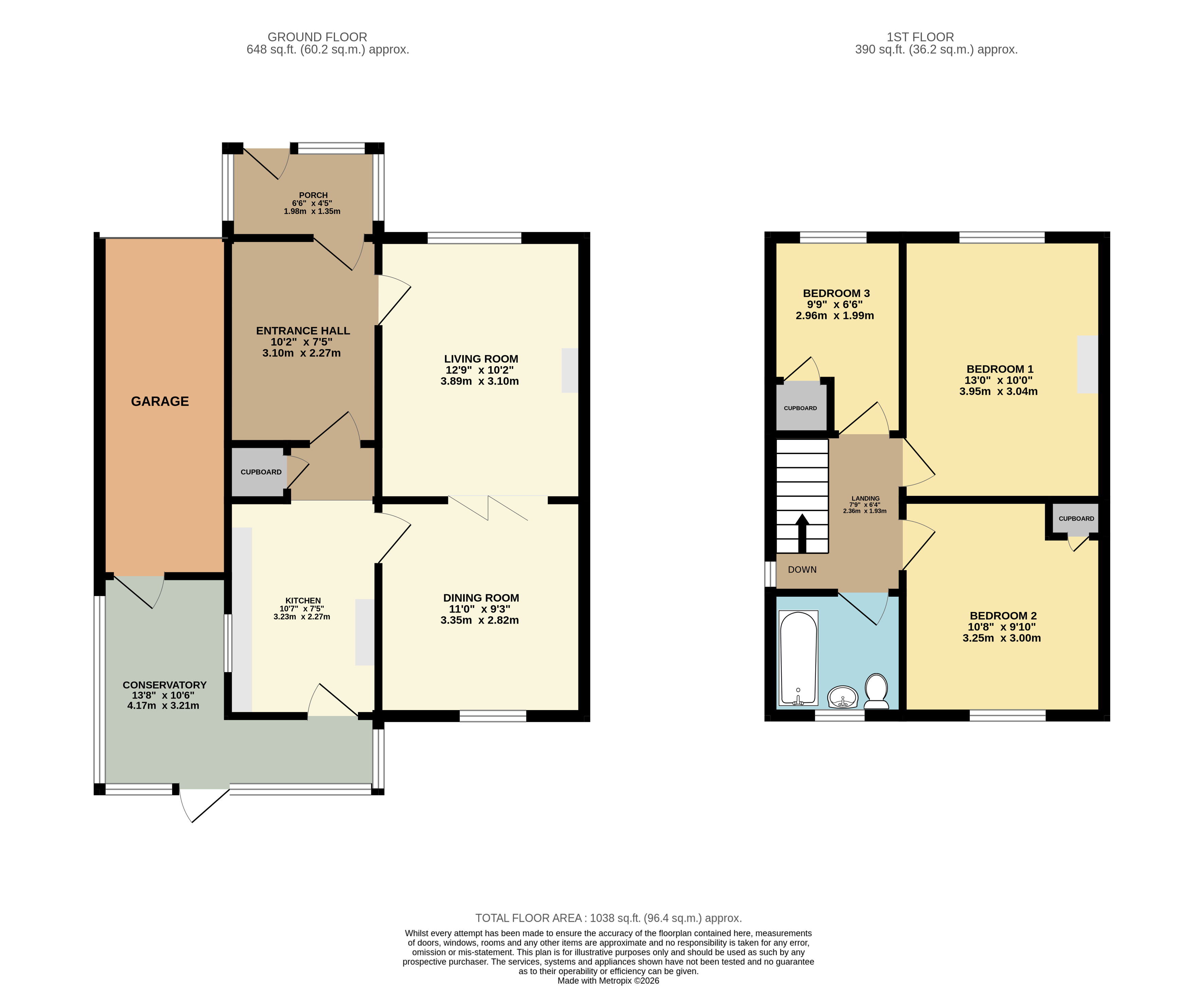 A flight of stairs rise to the first floor with doors leading to all principal rooms. Bedroom one and two are generous double rooms, whilst the third bedroom is smaller in size but could be an ideal home office or nursery. The family bathroom finishes this floor.