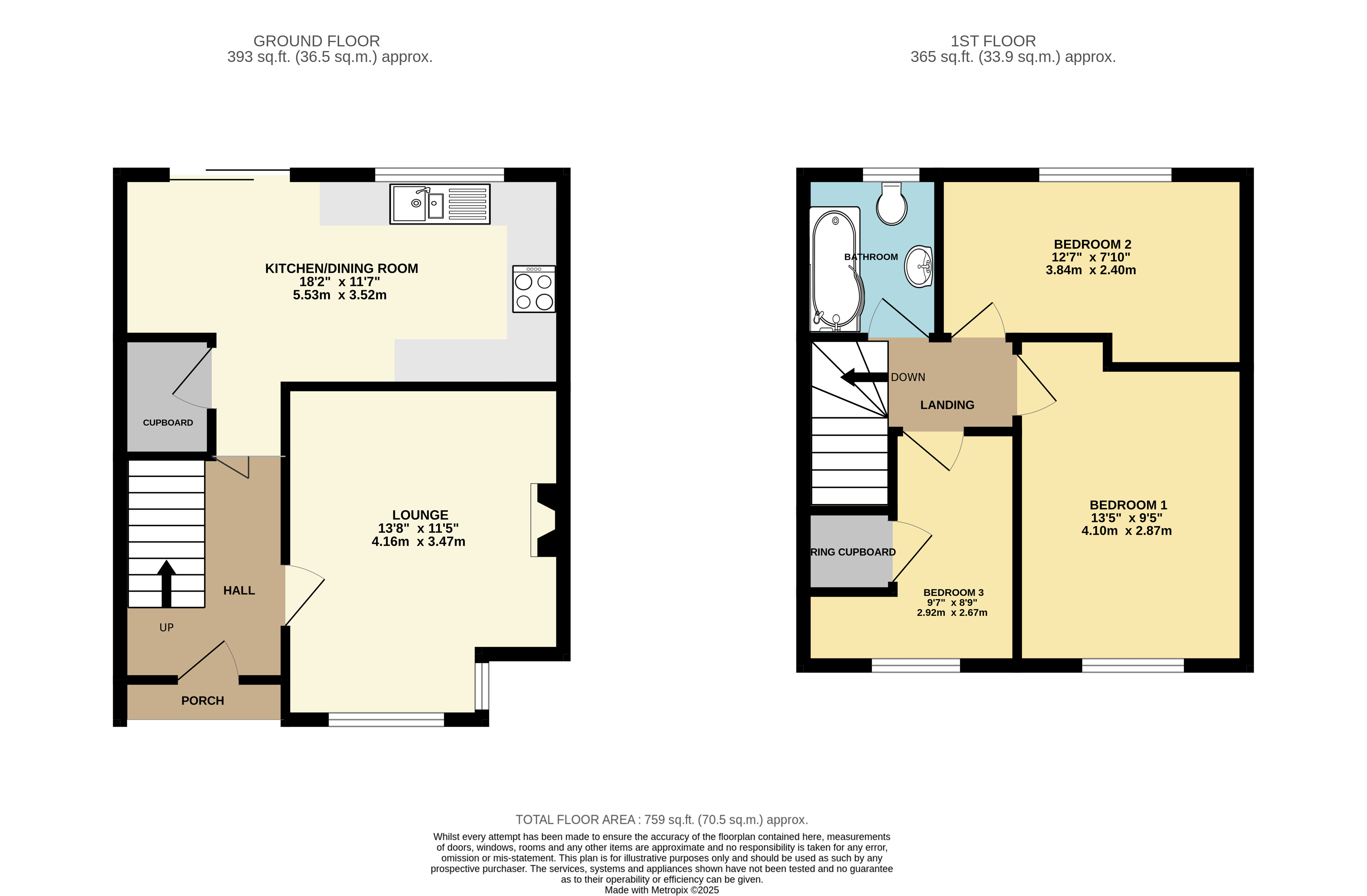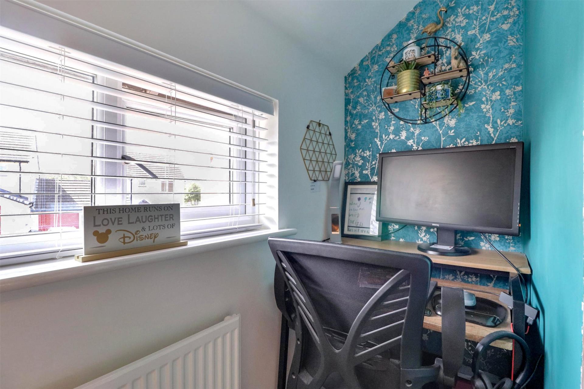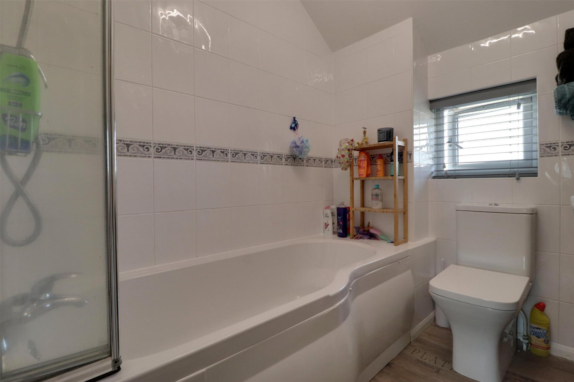 Upstairs, the property offers two generous double bedrooms overlooking the front and rear respectively, along with a third single bedroomideal as a home office if desired. The family bathroom completes the first floor, comprising a WC, wash basin, and a bath with shower over.