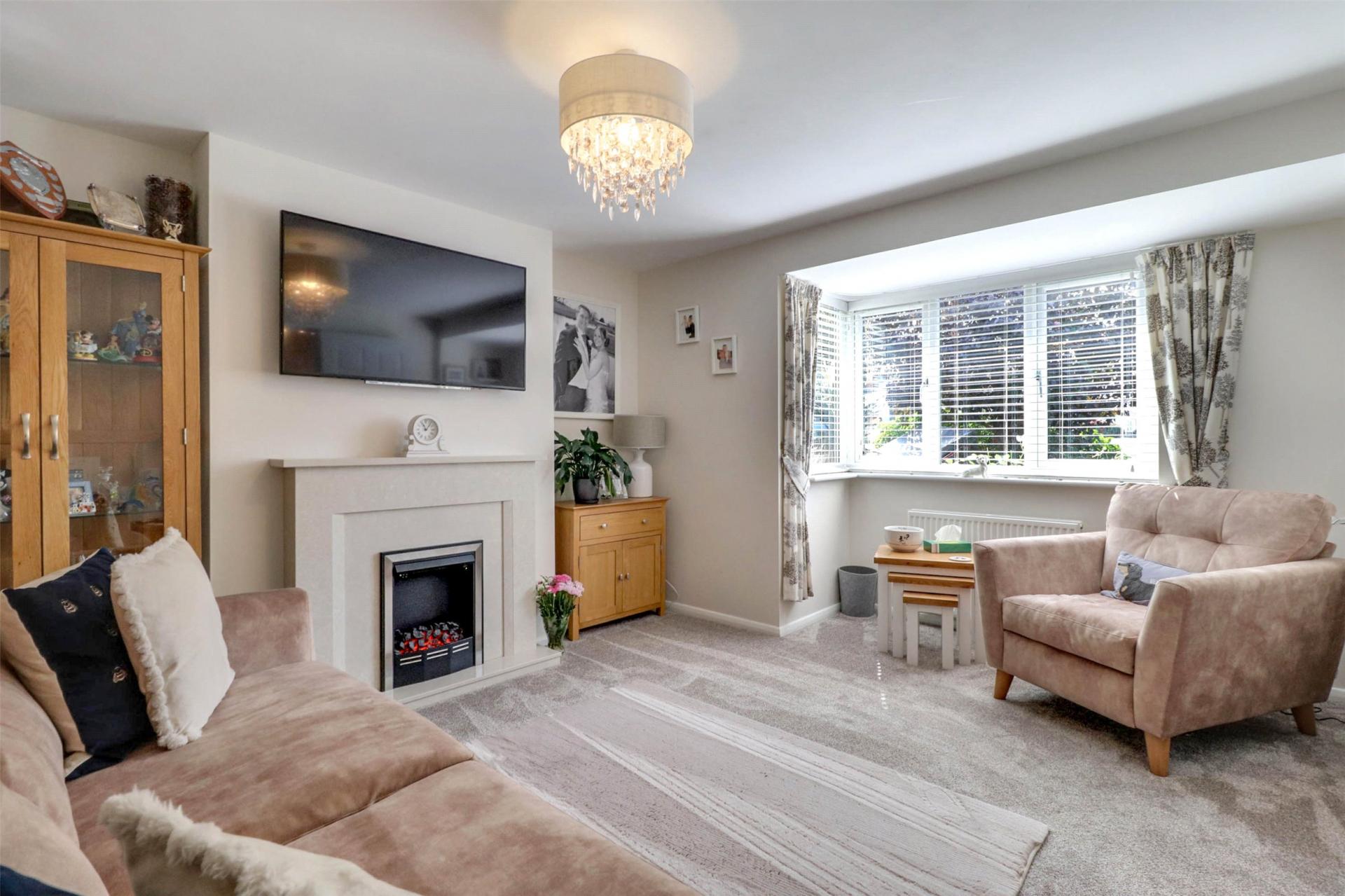 At the front of the property, the spacious lounge offers ample seating space and features a central electric fireplace. A charming bay window floods the room with natural light, creating a bright and inviting atmosphere.