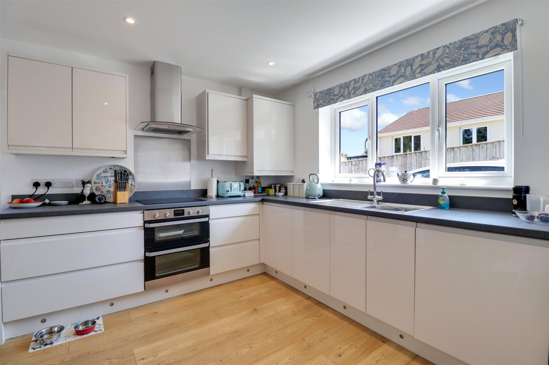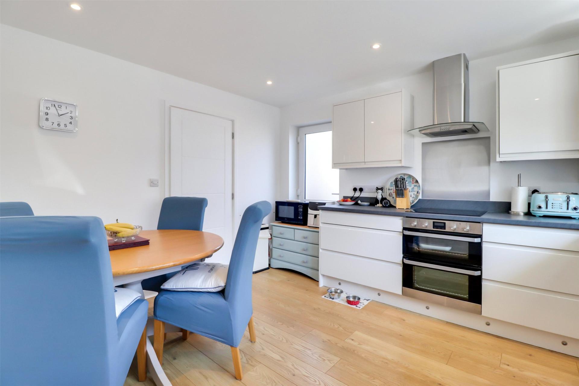 Overlooking the front of the property is a modern fitted kitchen / dining room can be found comprising of multiple eye and base level units including electric oven, hob and dishwasher with further space for free standing appliances along with additional space for a family dining table and chairs.
