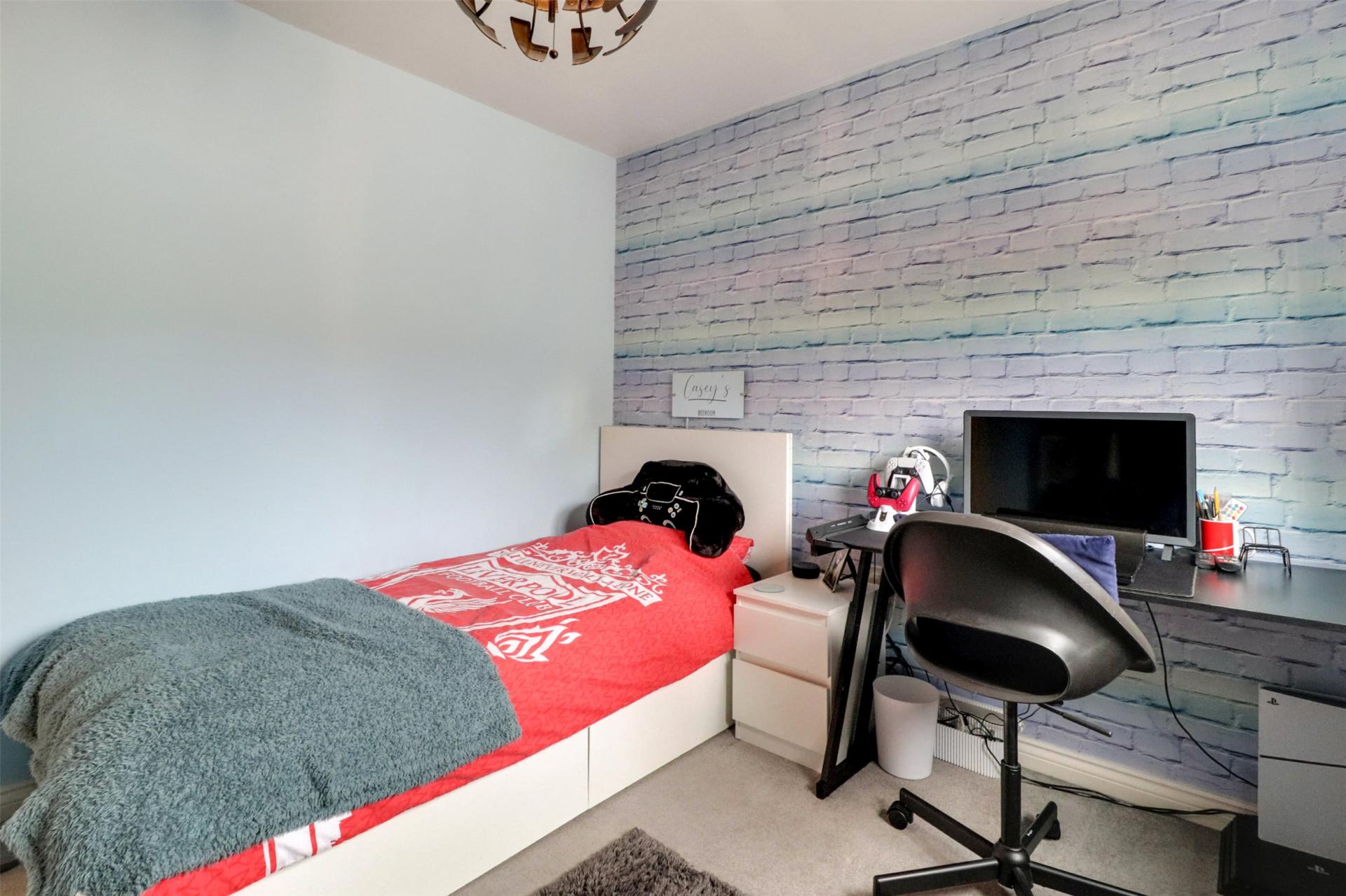There is a generous, enclosed rear garden with a patio area adjoining the rear of the home, providing plenty of space for large outdoor tables and chairs ideal for those summer BBQs. An elevated decked area offers additional seating, while mature trees, shrubs, and bushes create a natural, private backdrop. There is a lawn to the side of the garden adds a touch of greenery and space for children to play.