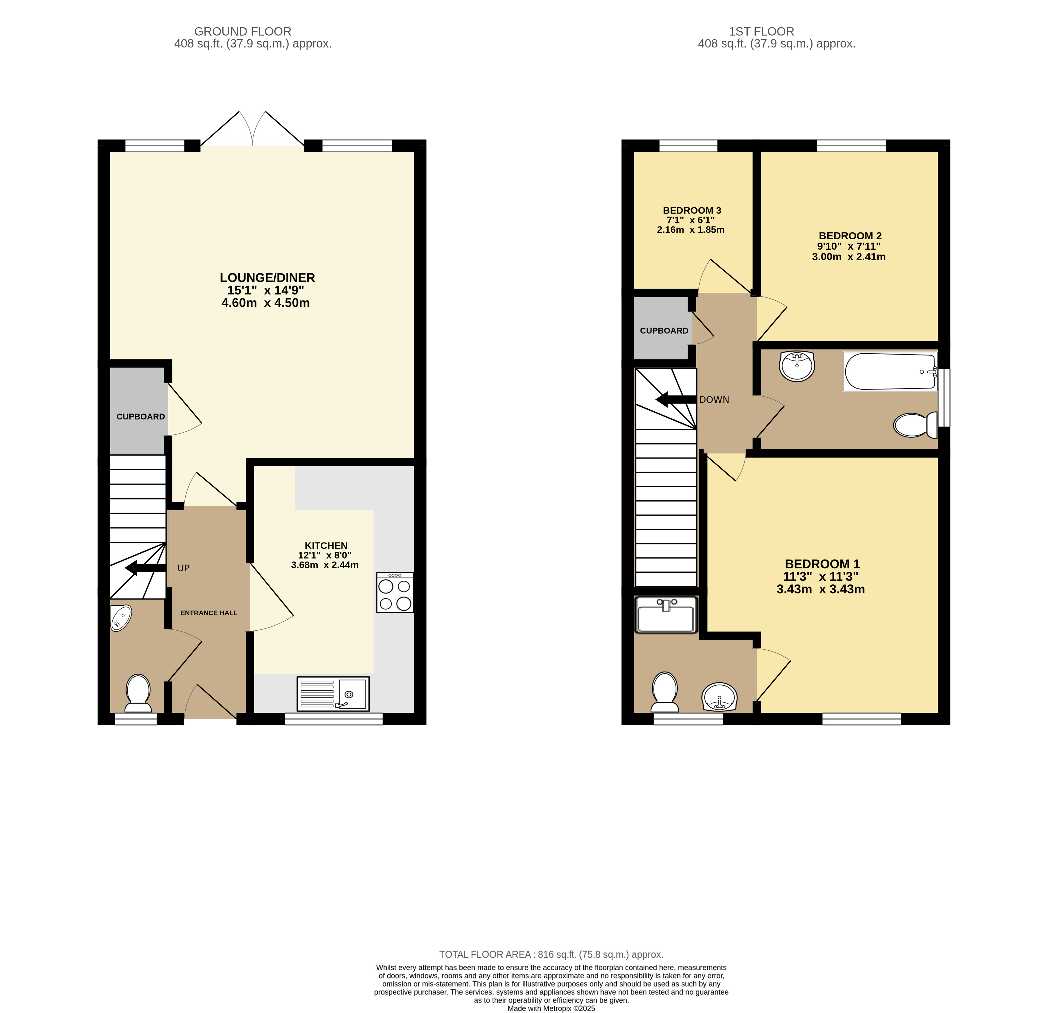 Upstairs, the home offers three well-proportioned bedrooms, two doubles and a single. The master bedroom, overlooking the front, benefits from its own en-suite shower room. A stylish family bathroom with WC, wash basin, and bath completes the first floor.