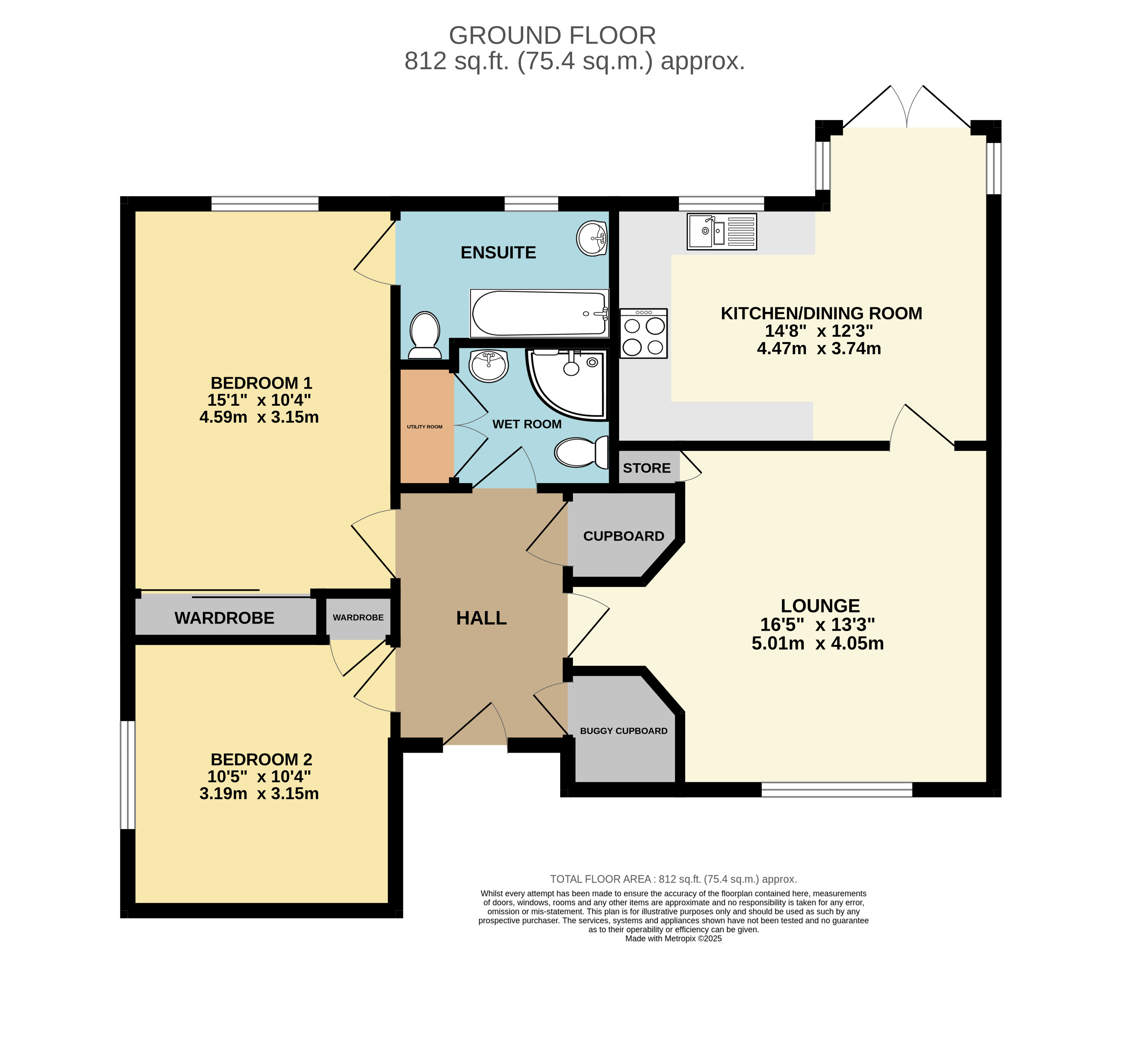 Wet Room 5'8" x 5'7" (1.73m x 1.7m).