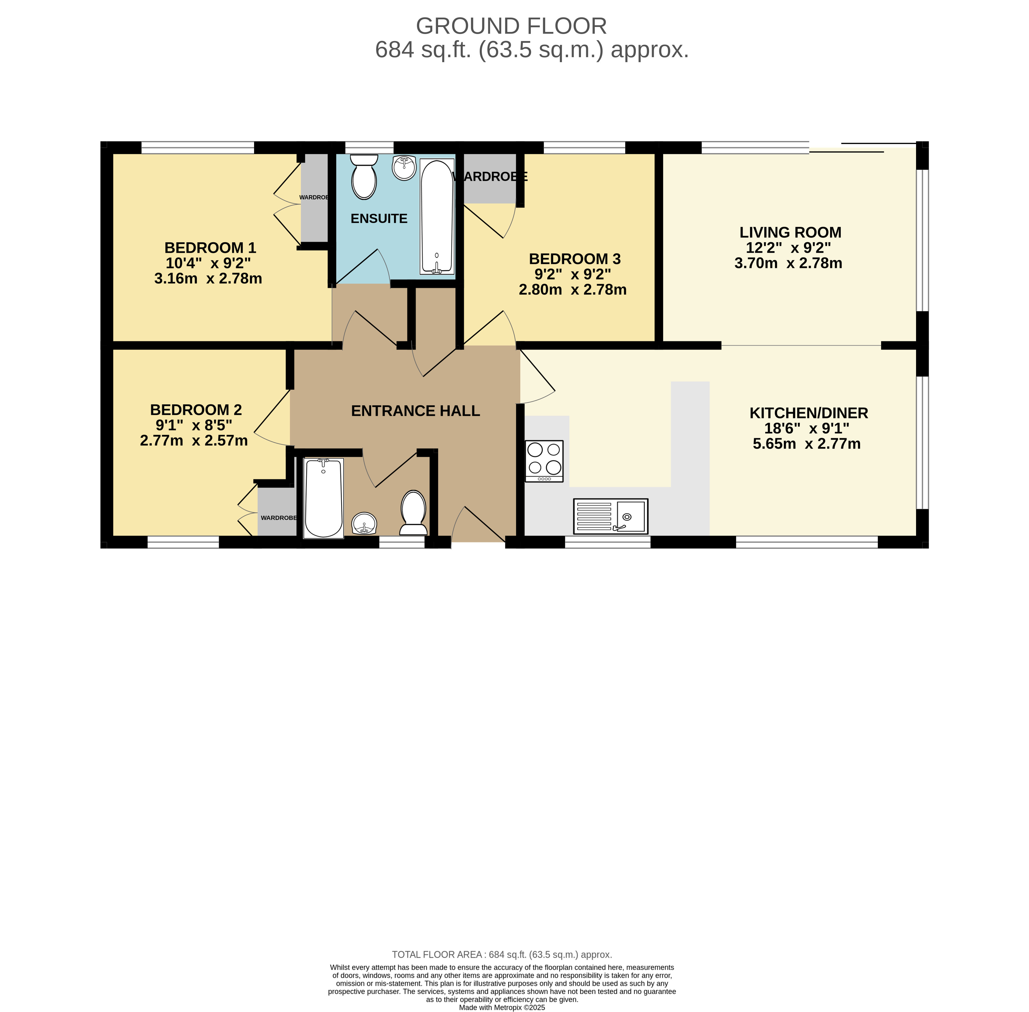 Bedroom 3 9'2" x 9'1" (2.8m x 2.77m).