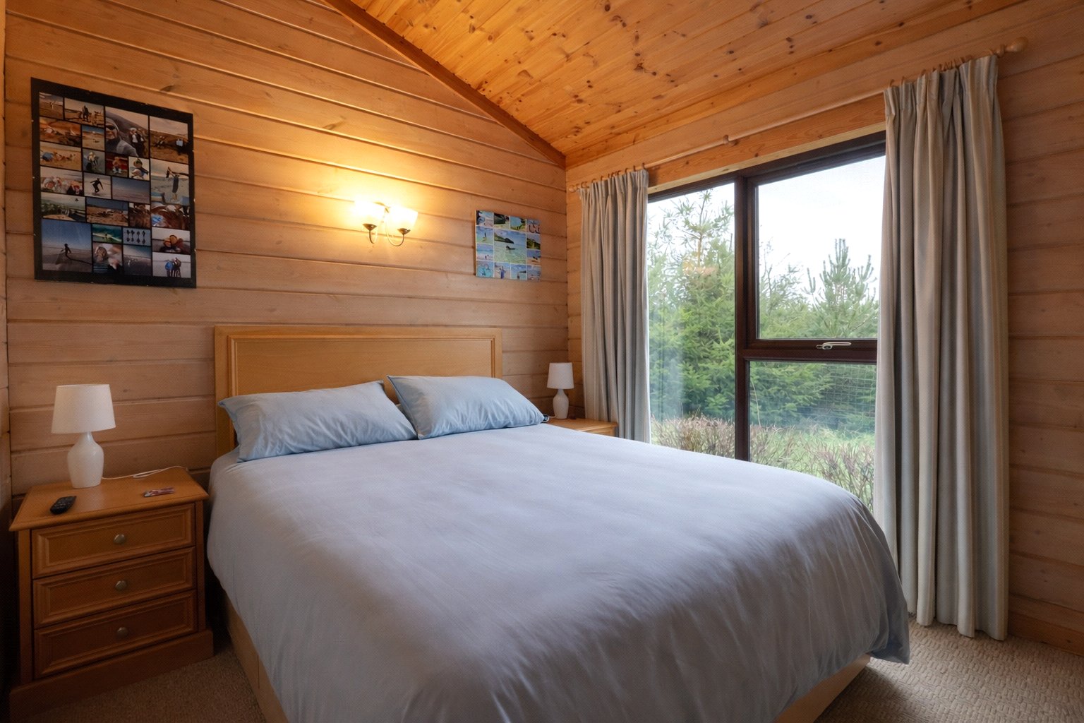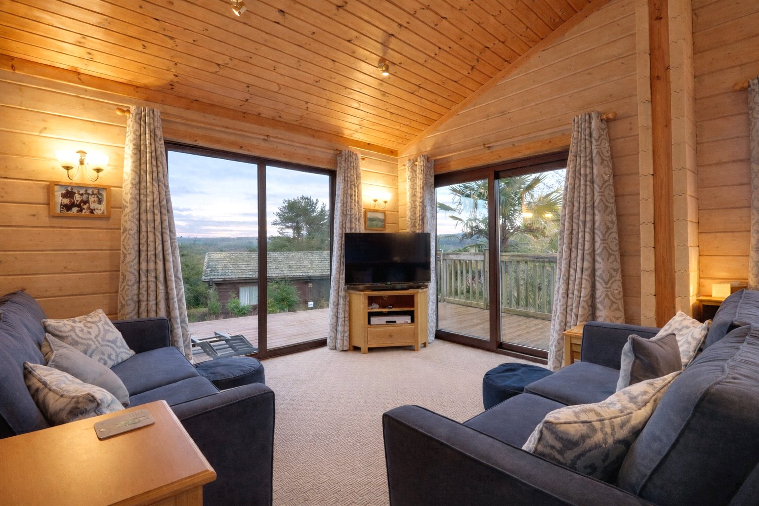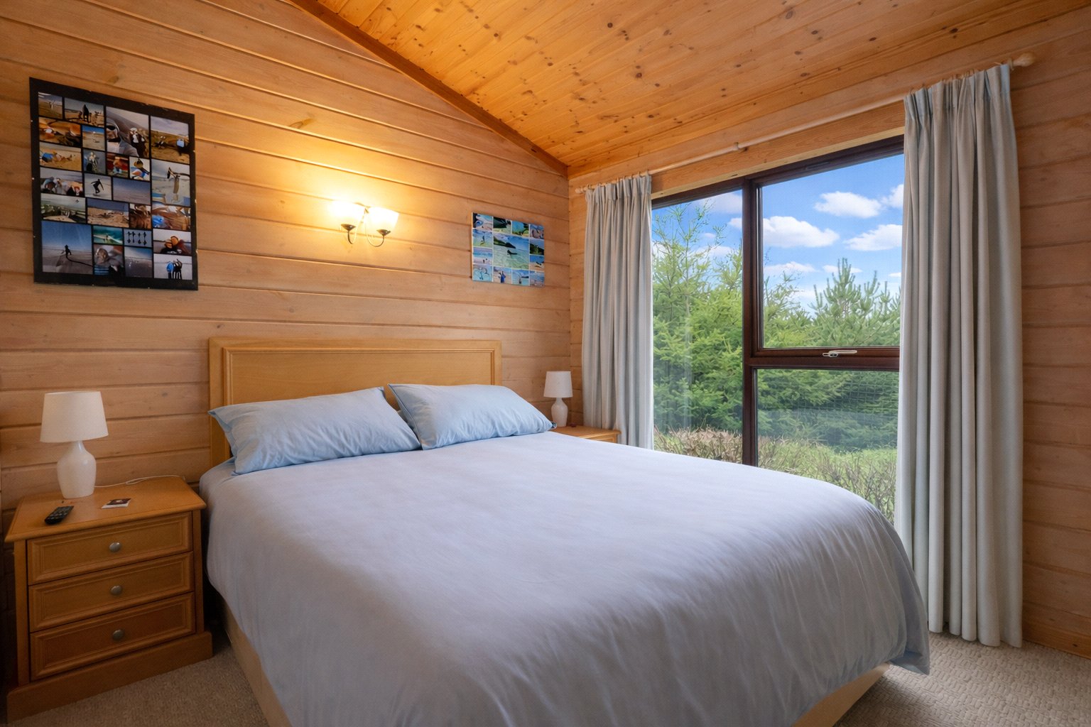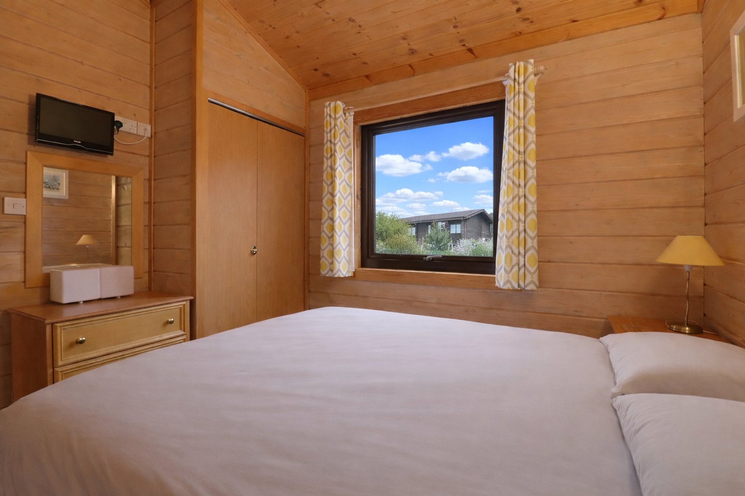 Stepping through the front door and into the hallway sets the scene for a wooden retreat. Turning right from the hallway welcomes you seamlessly into the open plan living space with high vaulted ceilings. There is a fitted kitchen with ample space for white goods and a dining area benefitting from large windows to soak in the beautiful surrounding countryside views. The living area, with an abundance of natural light makes a great place for relaxing and a large sliding door allows you to step out onto the decking area and outside space, a perfect hosting area for those warm summer evenings.