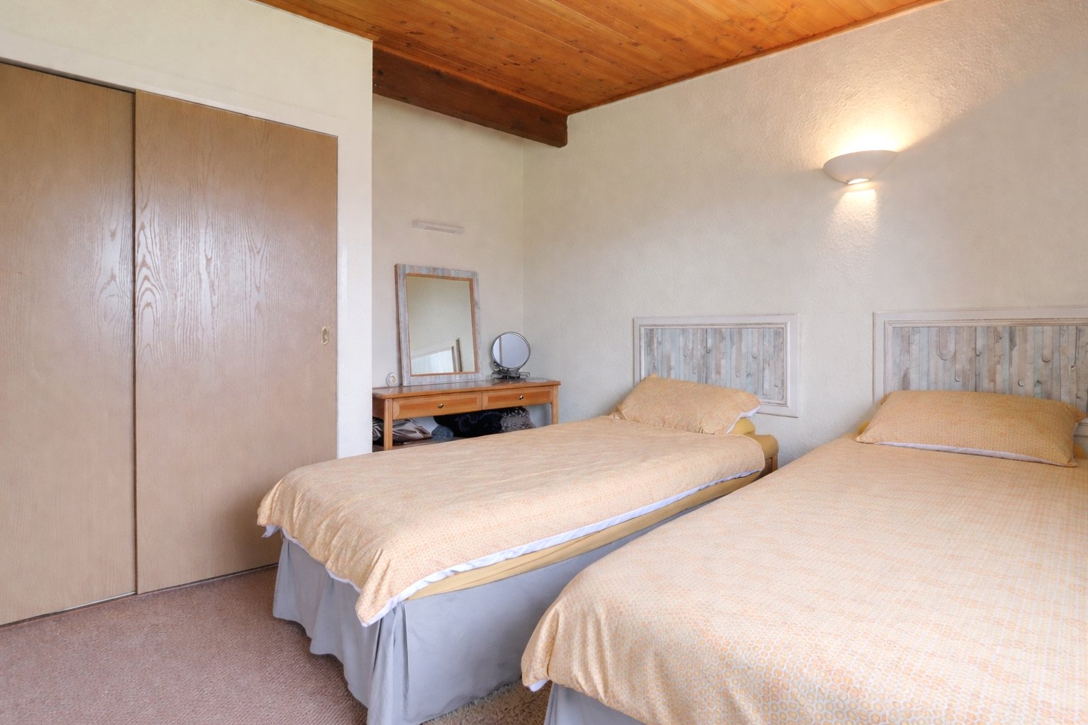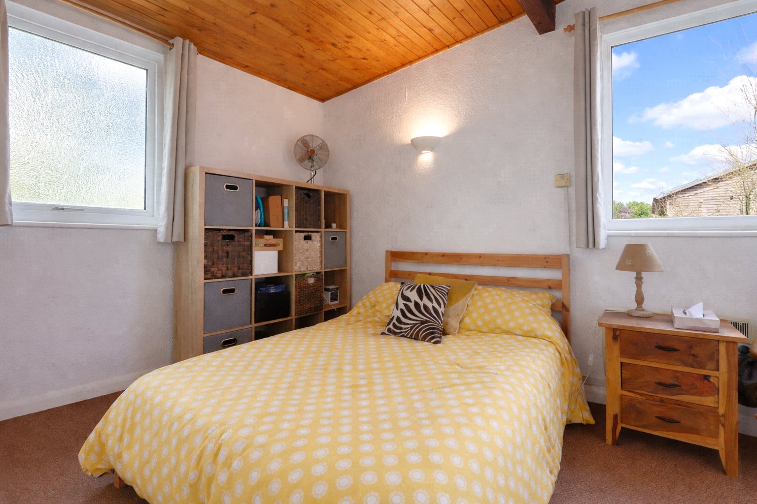 The master bedroom is a generous double featuring a warm wooden ceiling and pleasant natural light from dual windows. The room offers a peaceful retreat with fitted wardrobes for storage and an en suite shower room. Bedroom two is another double sized room also benefitting fitted wardrobes.