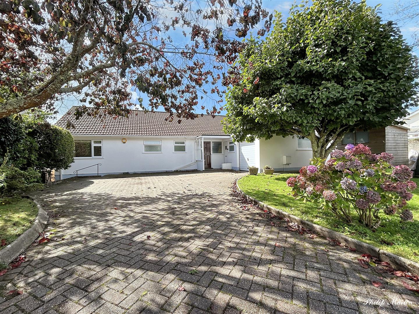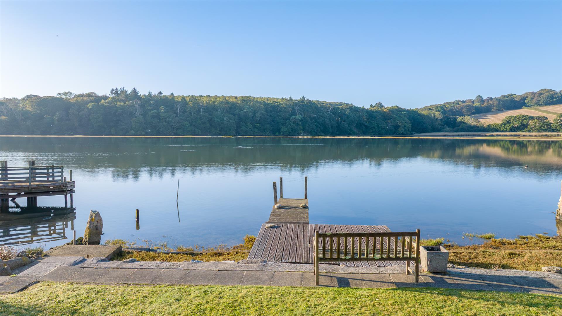 Rear Garden - The rear garden is a sheer delight and enjoys a sunny southerly aspect with magnificent views over the creek towards the wooded Carclew estate. The garden enjoys approximately seventy feet of direct water frontage, beyond the garden is the shingle beach exposed at low tide encouraging many species of wildlife and a vast selection of shore birds. Here is a decked wooden jetty, concrete landing area and concrete slipway that leads onto the foreshore and a running mooring line. The garden is mainly level lawn and pathways run along both sides of the garden to the foreshore. In a sheltered position below the bungalow is a patio providing sitting out space with rockery and many shrubs and plants including heathers, roses, camellias, agapanthus, and granite steps lead from the lawn up to a further raised terrace providing additional sitting space and access into the conservatory. The path continues along the side of the bungalow, past the kitchen, where there are raised flower beds, outside tap, access into the rear hallway and a gate leads to the front.