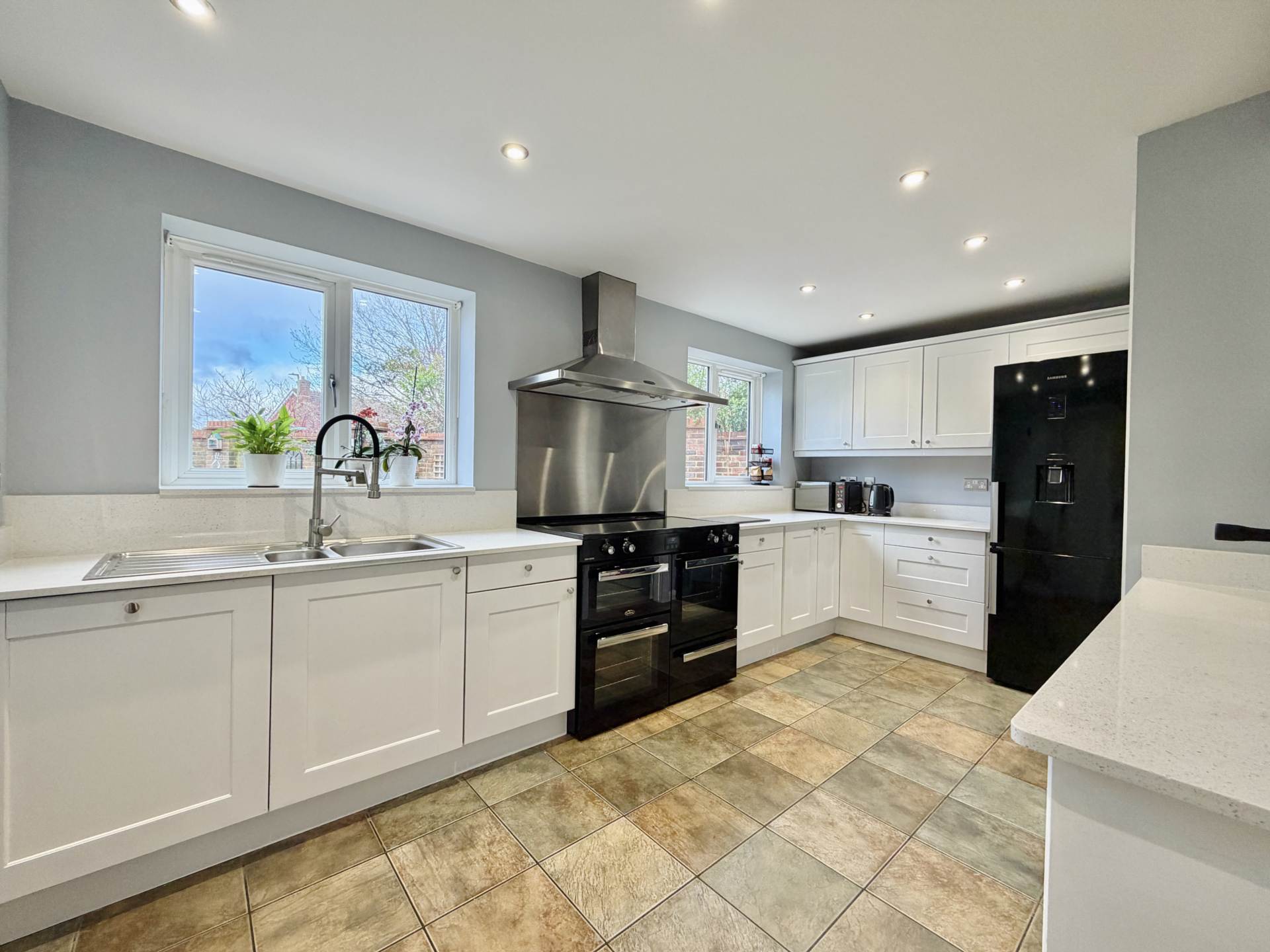 To the first floor are four well-proportioned bedrooms, led by an impressive principal bedroom featuring twin double wardrobes and a contemporary en-suite shower room. The remaining bedrooms are served by a modern family bathroom, completing a thoughtfully designed and practical layout.