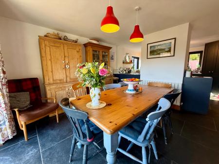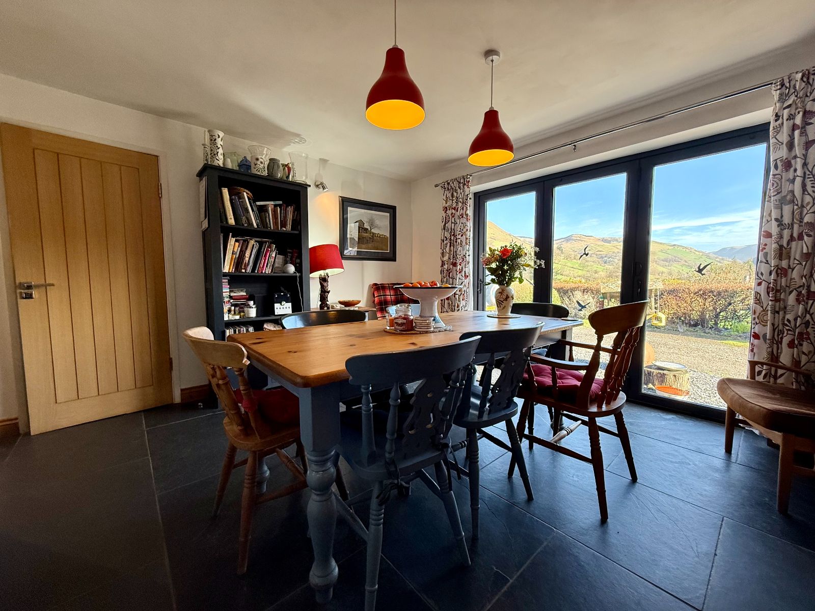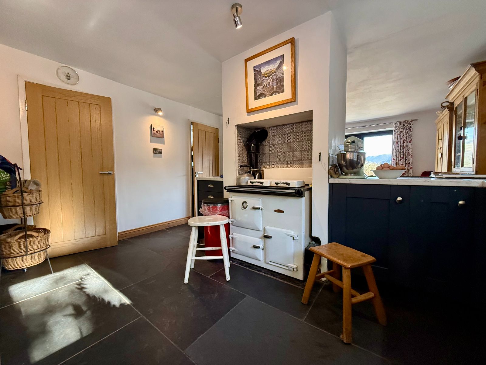 The accommodation is accessed via a front door leading into an L-shaped entrance hallway, which provides access to all rooms. To the right is a comfortable sitting room featuring a wood-burning stove and bi-fold doors opening to the front, allowing the views to be fully enjoyed. To the left of the hallway is a spacious and contemporary kitchen/dining room, fitted with a range of modern units and a Rayburn, along with bi-fold doors to the front. A doorway leads from the kitchen to the rear hallway and utility area.
