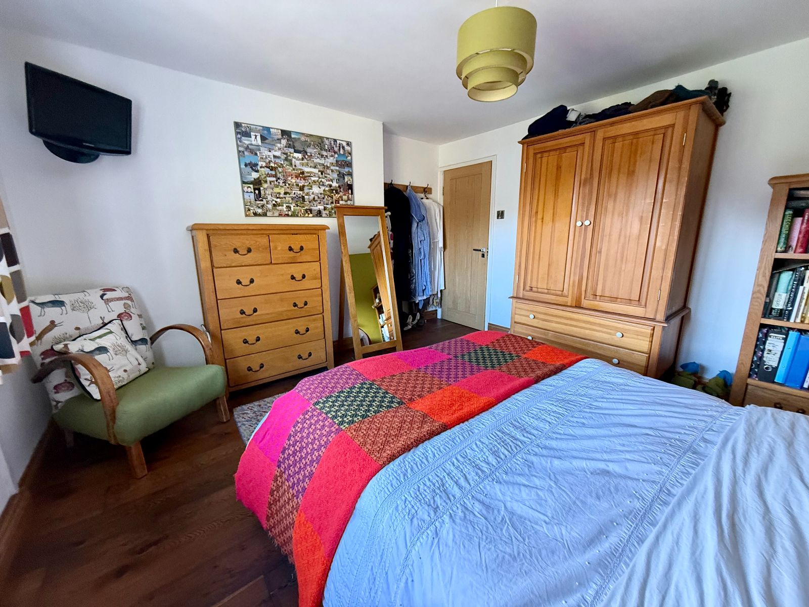 Window to rear overlooking garden, built-in wardrobes, radiator, engineered oak flooring.