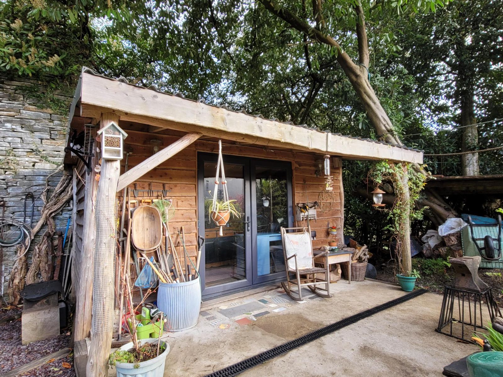 Timber studio with veranda area, currently utilised as a craft room, but could be used as a home office or similar.