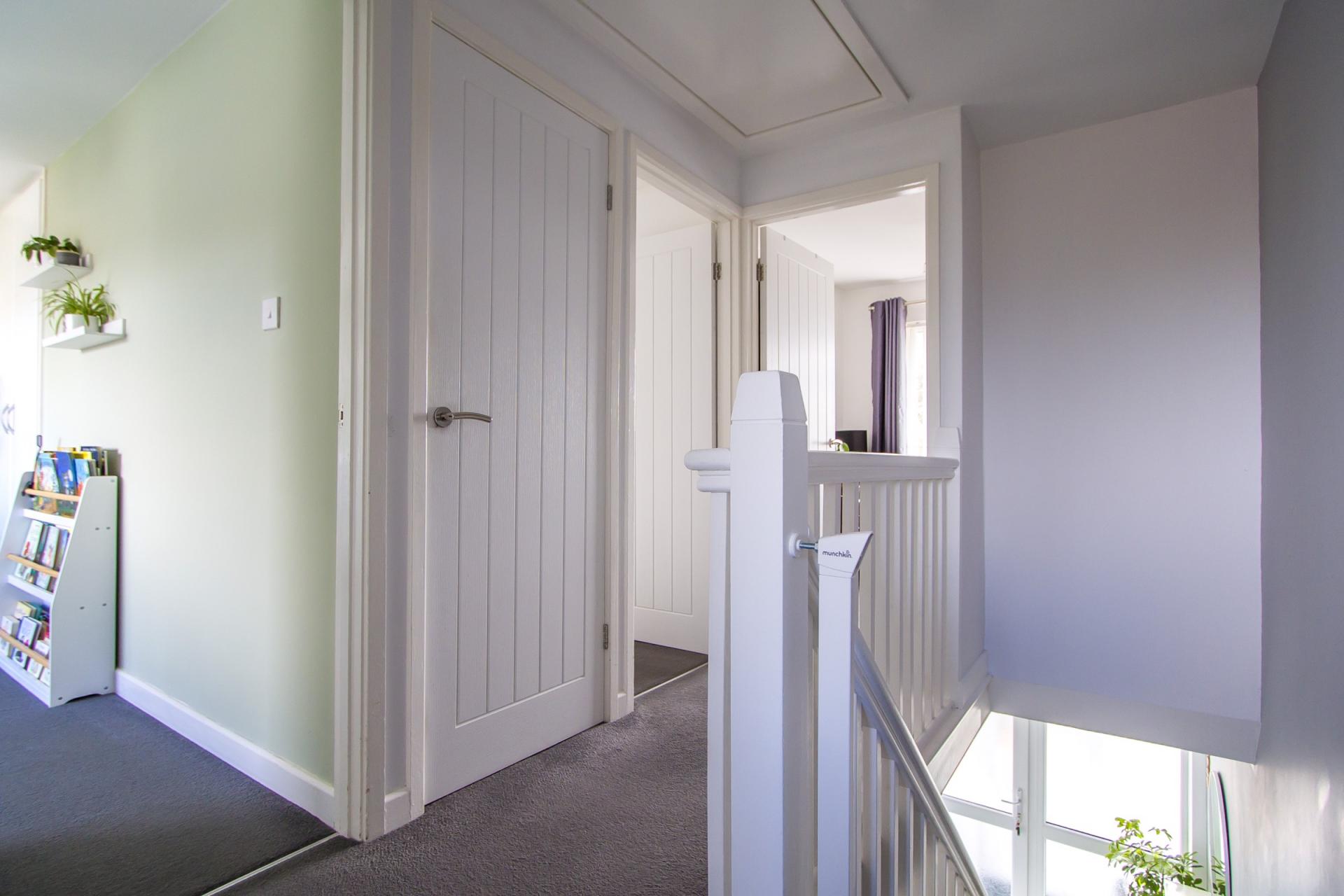 Fitted carpet to the stairs and landing. Doors to all three bedrooms and the bathroom. Built-in airing cupboard with fitted shelving. Power points. Hatch to the loft space and a vent for the PIV (Positive Input Ventilation) system.