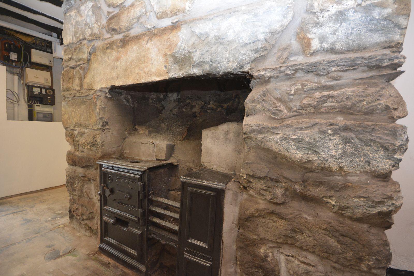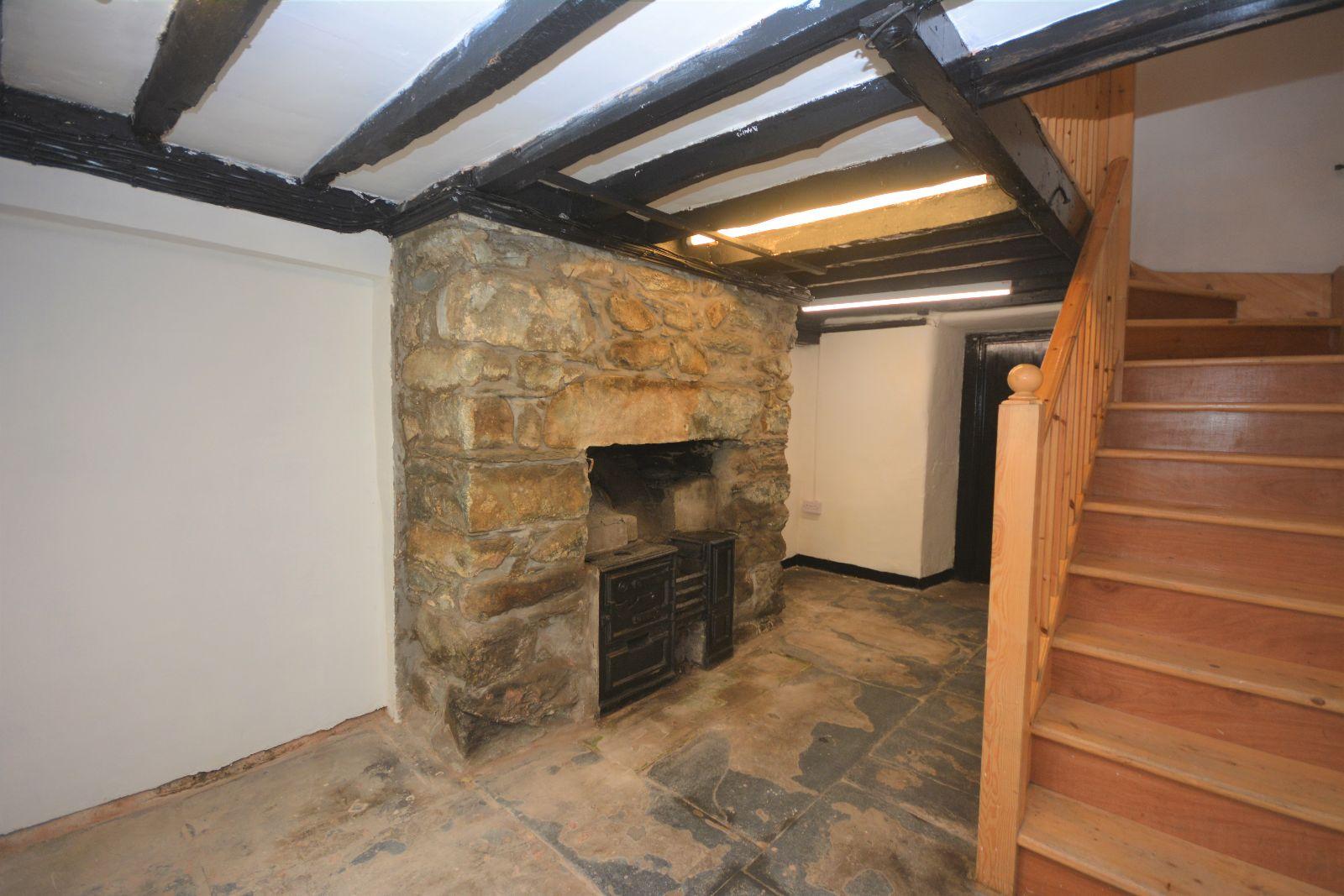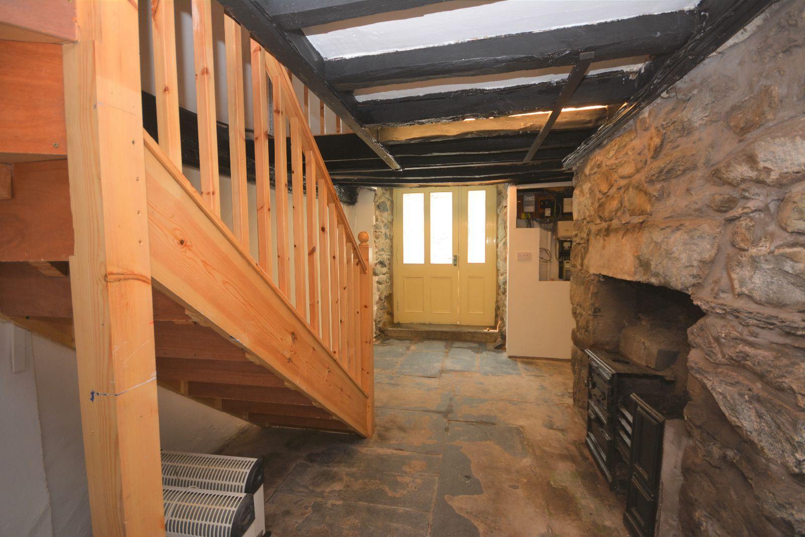 Door to front and rear, exposed beams, exposed stone feature fireplace with original cast iron range, tiled hearth, slate flagged flooring.