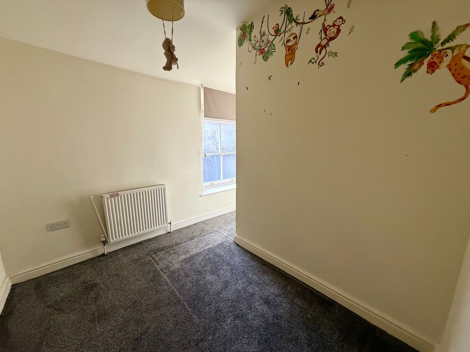 Window to front, radiator, carpet.
