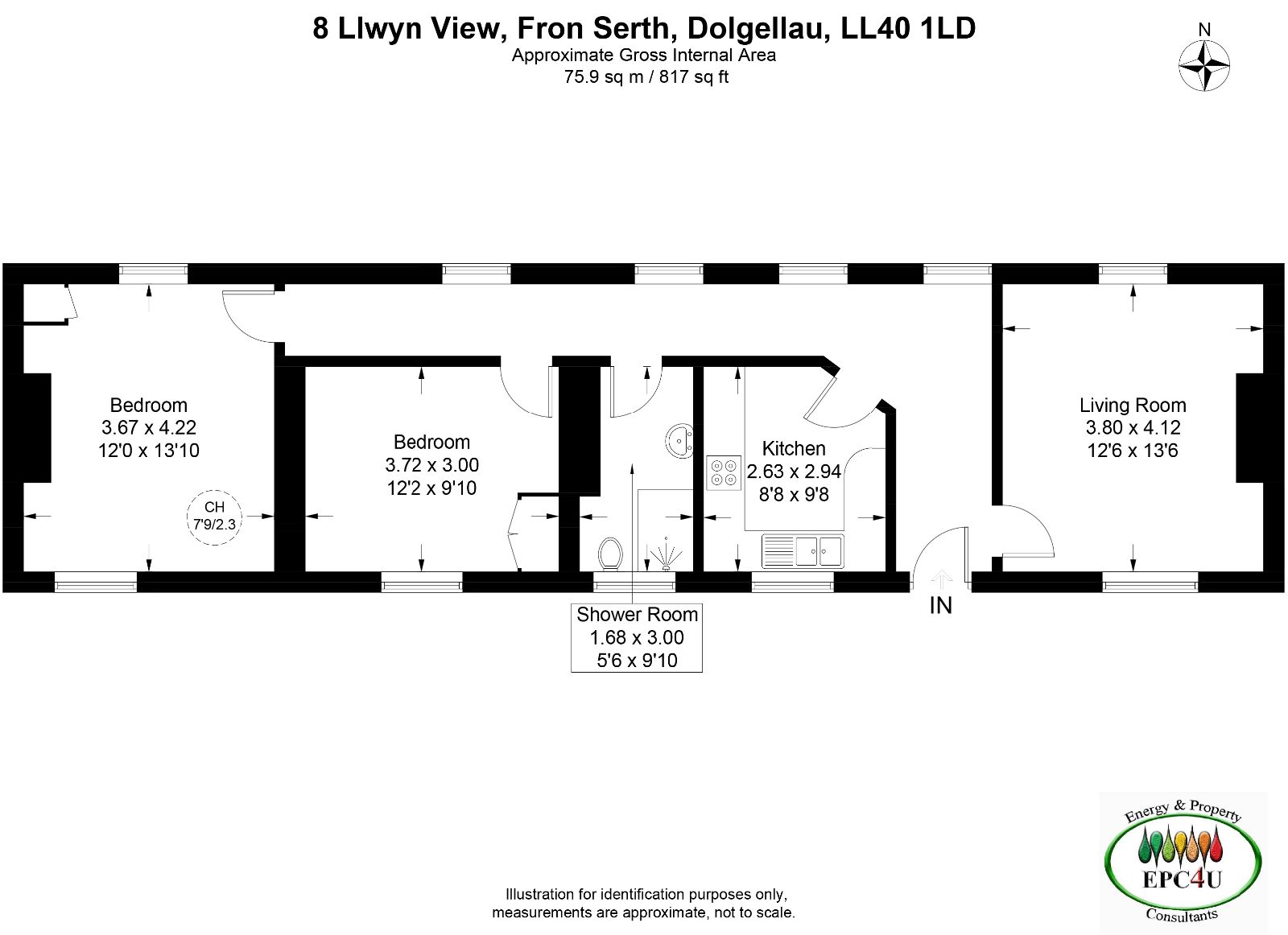The property is entered via an L-shaped hallway with 4 windows to the rear, which leads to all rooms. To the right, there is a sitting room with window to the front. From the hallway, to the left at the front of the property, you will find a well-equipped modern kitchen. The accommodation also includes a contemporary shower room with a large walk-in shower, toilet, and wash hand basin, along with two generously sized double bedrooms, each benefiting from fitted cupboards.