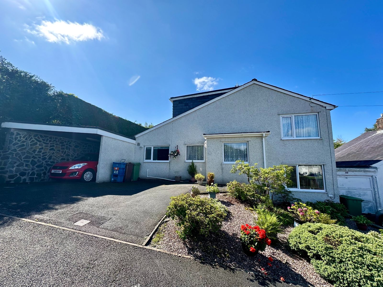 To the Front : Driveway with ample off road parking, garden and carport.
