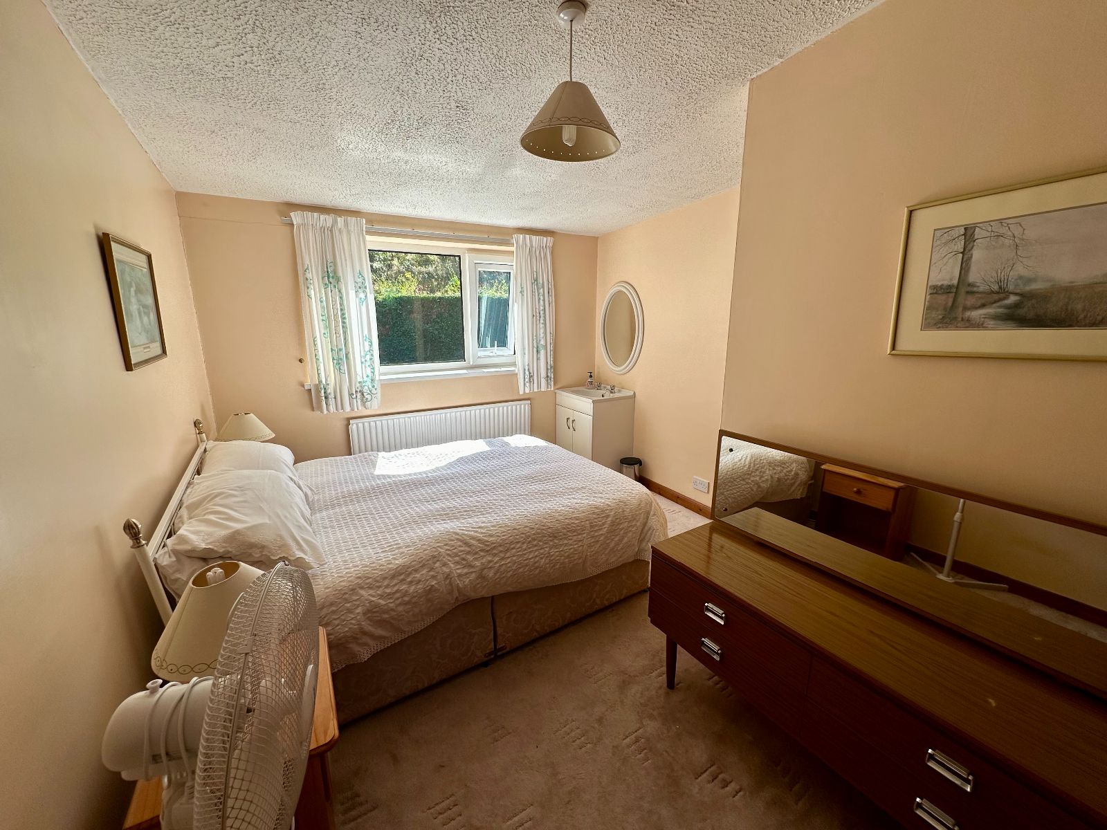 Windows to rear overlooking garden, radiator, carpet.