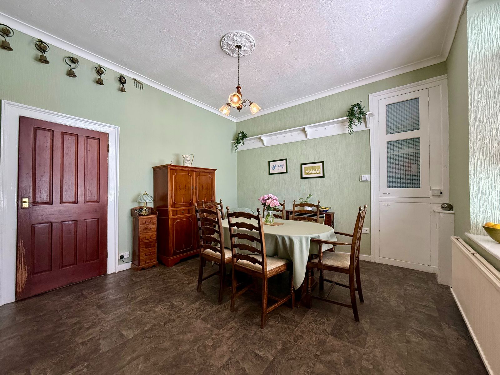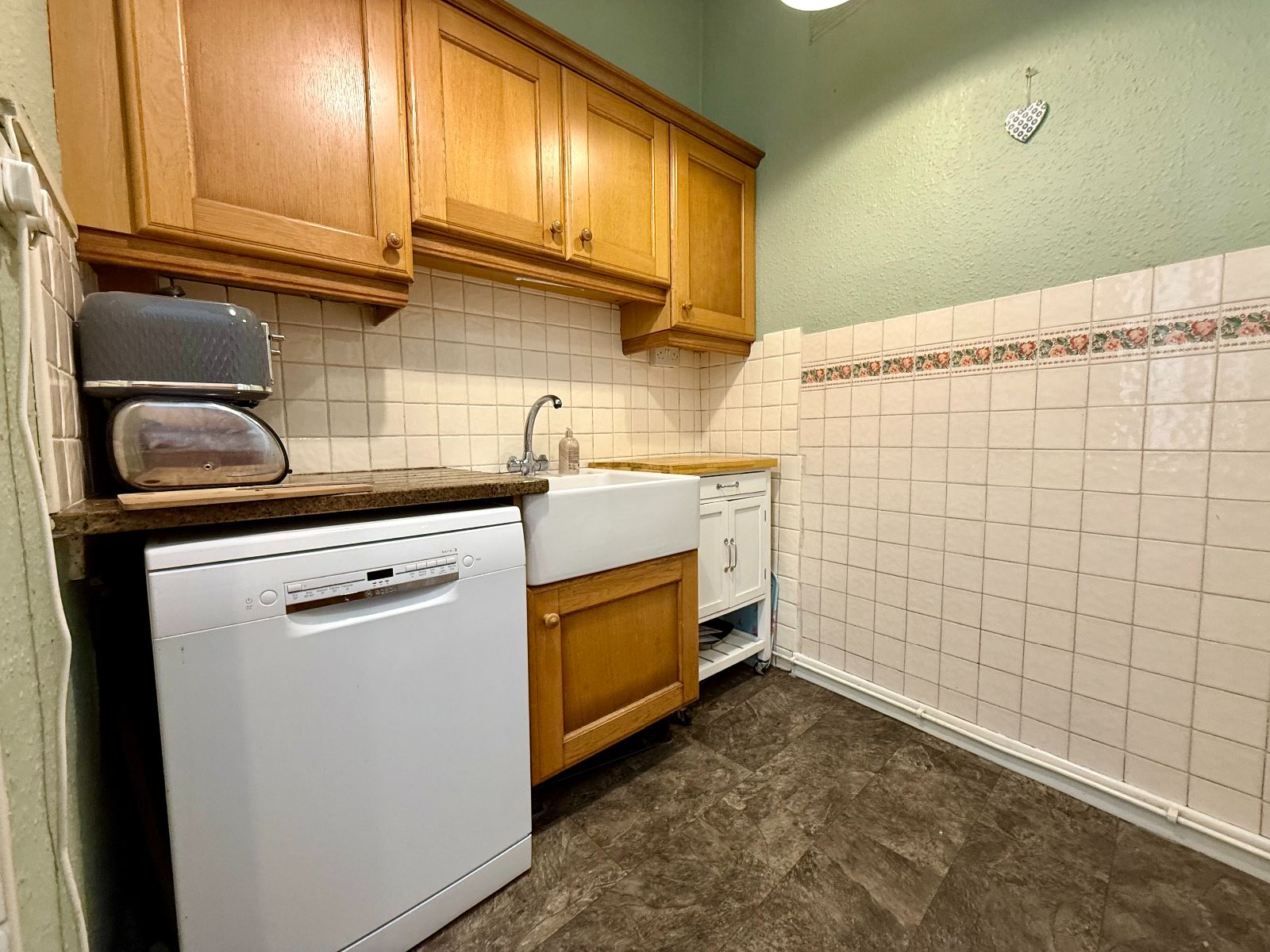 Door to side leading to garden area, coved ceiling, plumbing for washing machine, space for fridge freezer and freezer, space for tumble dryer, original Minton flooring.