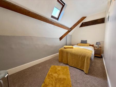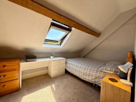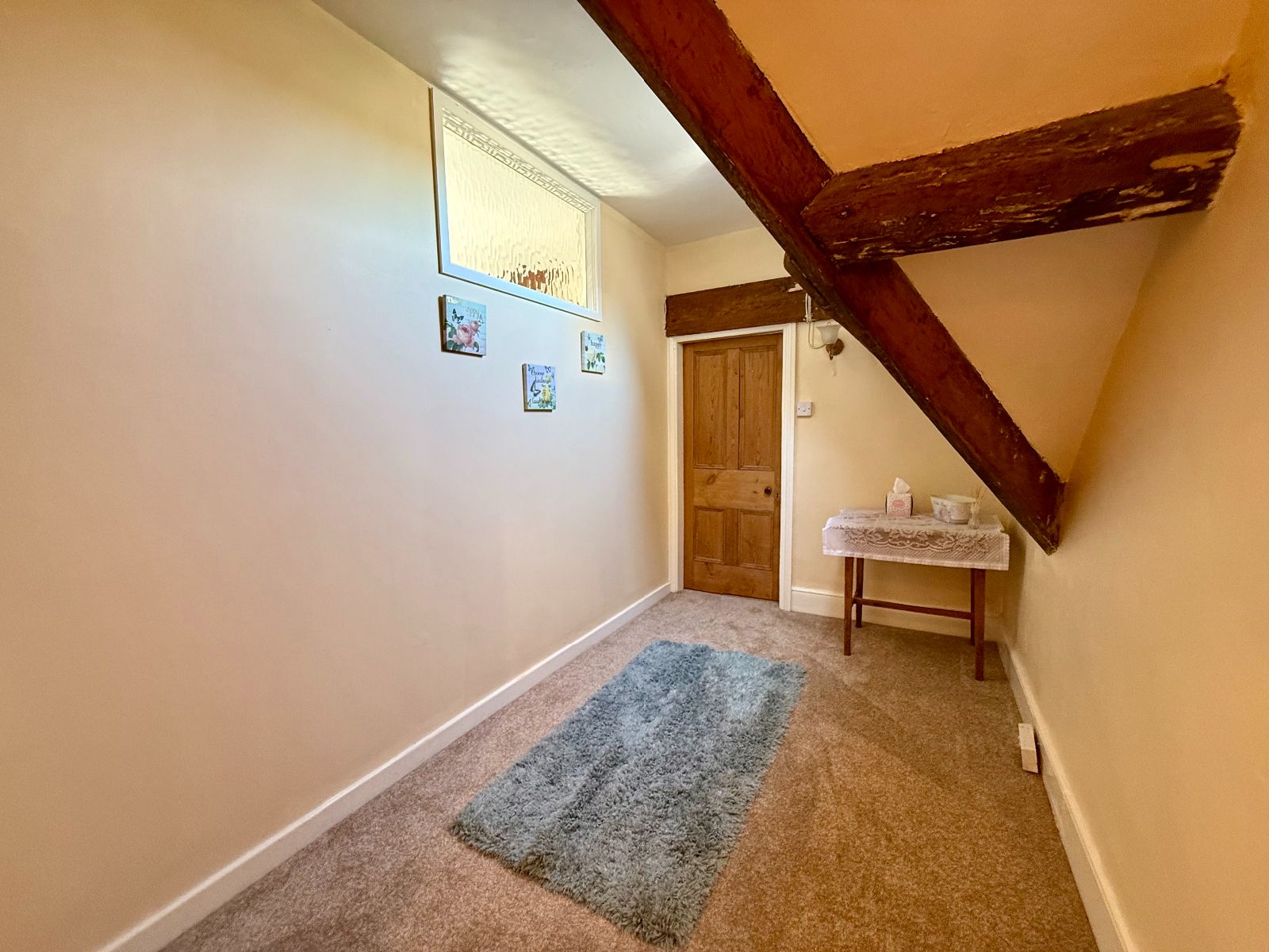 Velux to front, exposed beams, internal window to inner landing, carpet.